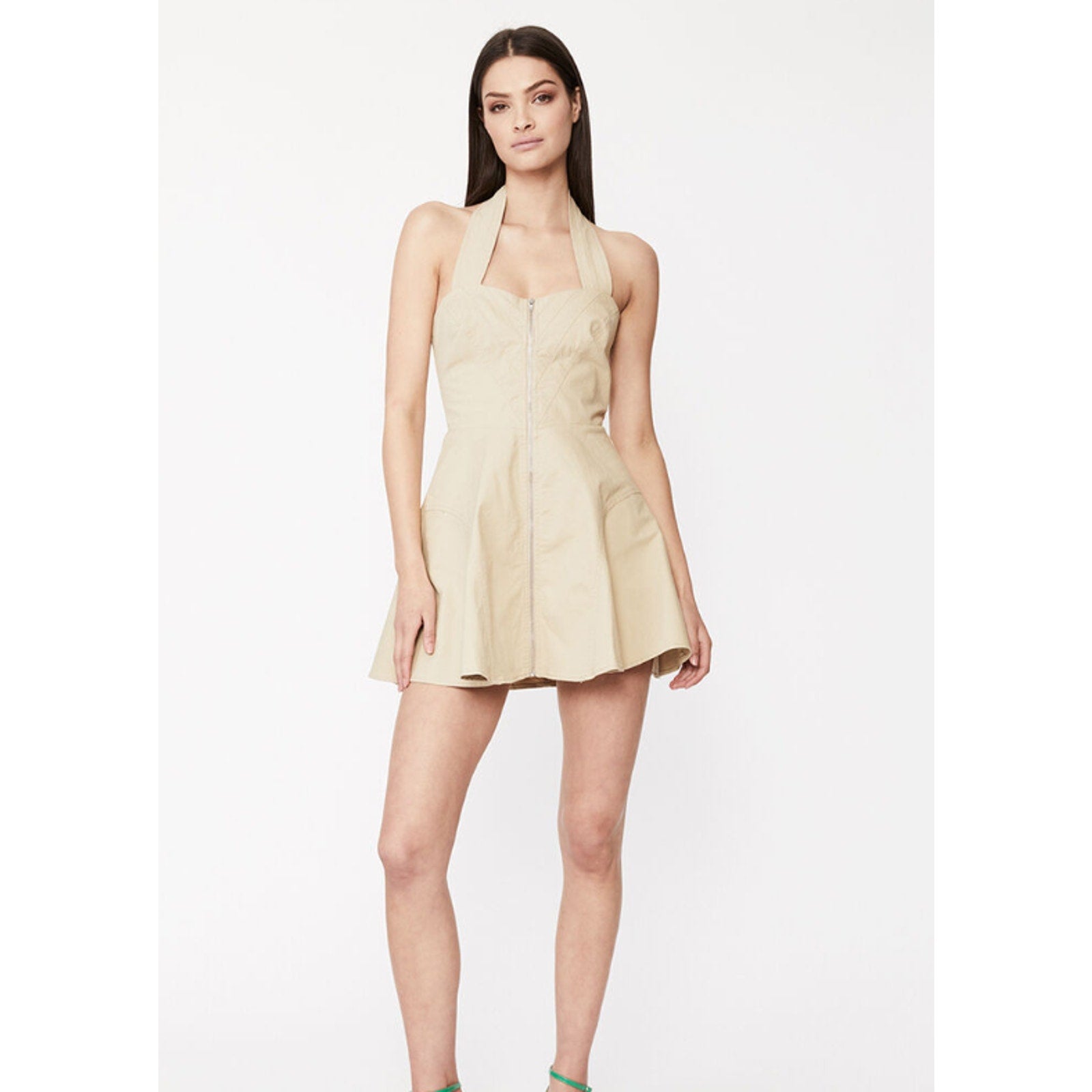 BARDOT Womens Lee Halter Utility Dress Beige MEDIUM US 6