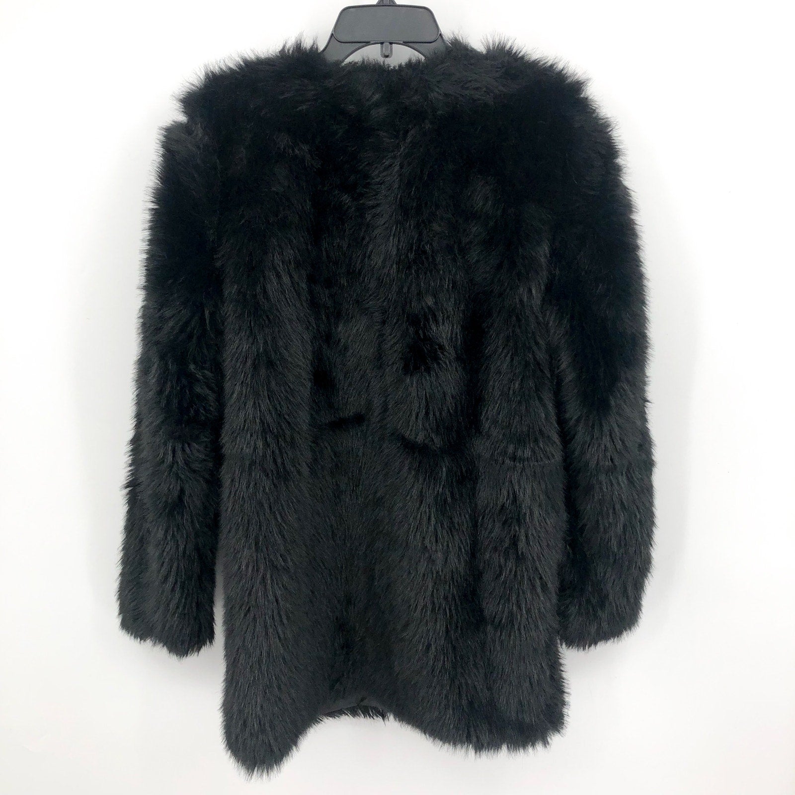 BARDOT Women's Logan Faux Fur Coat Jacket Large Black Long Sleeve NWT