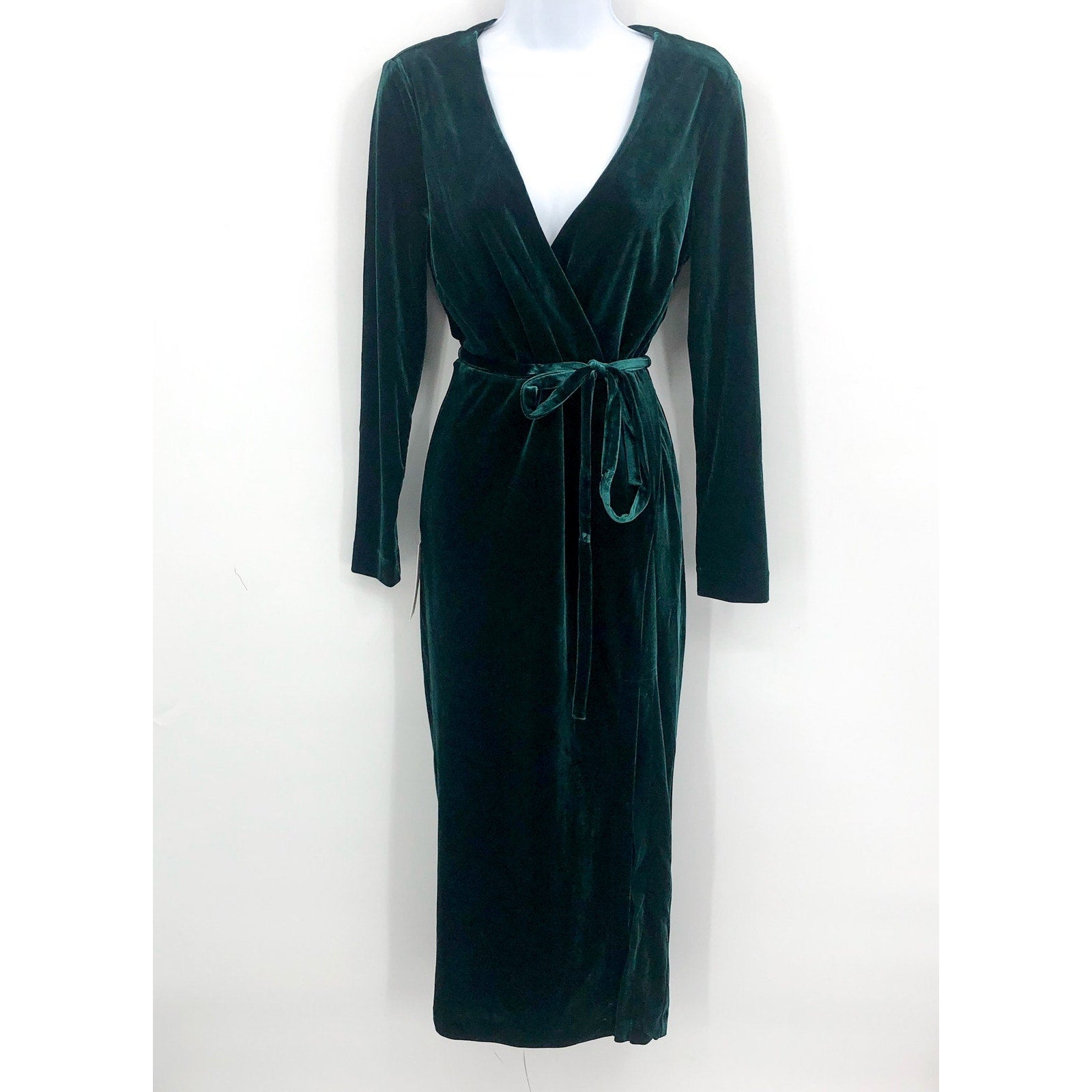BARDOT Women's Morgan Velvet Wrap Dress US 6 Forest Green Long Sleeve NWT