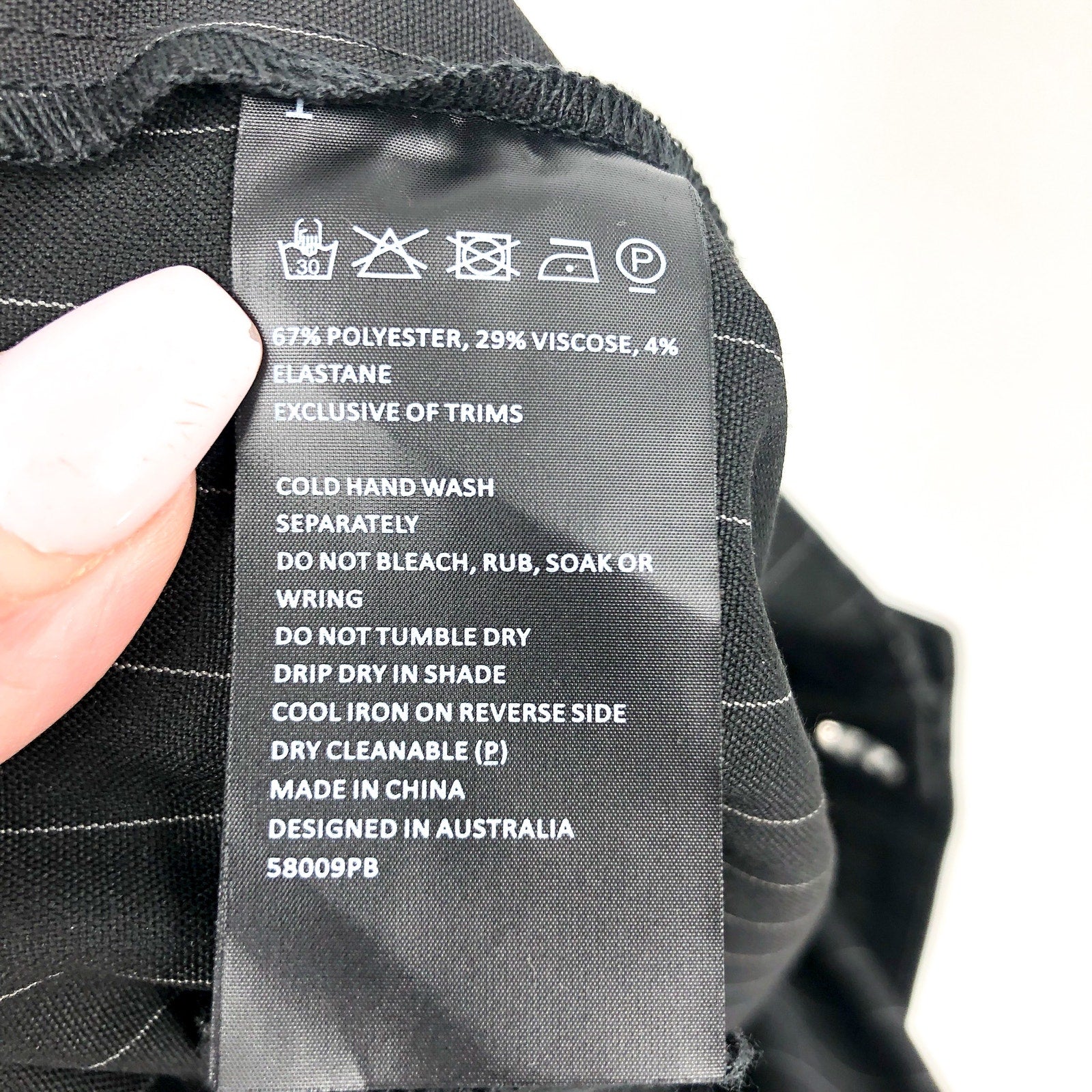 67% Polyester, 29% Viscose, 4% Elastane