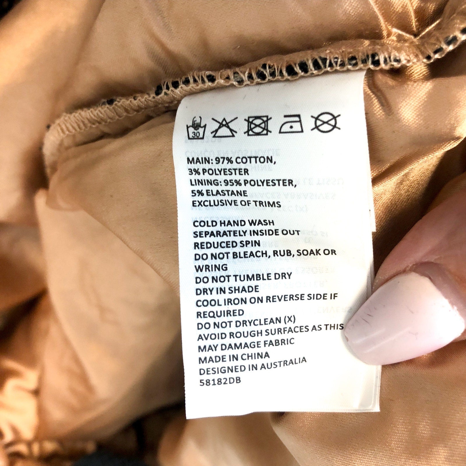 97% Cotton, 3% Polyester. Lining: 95% Polyester, 5% Elastane