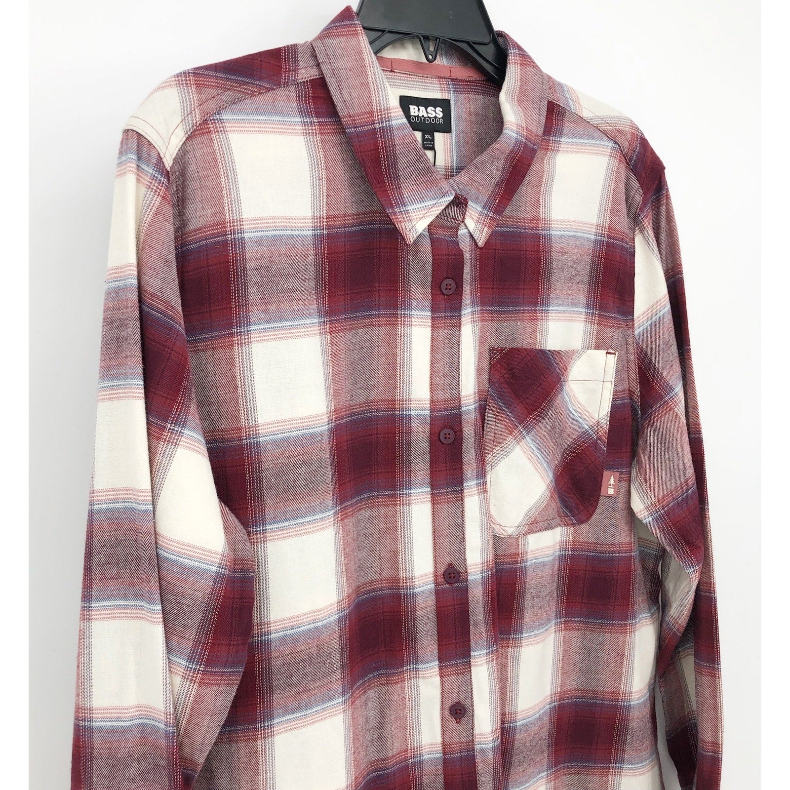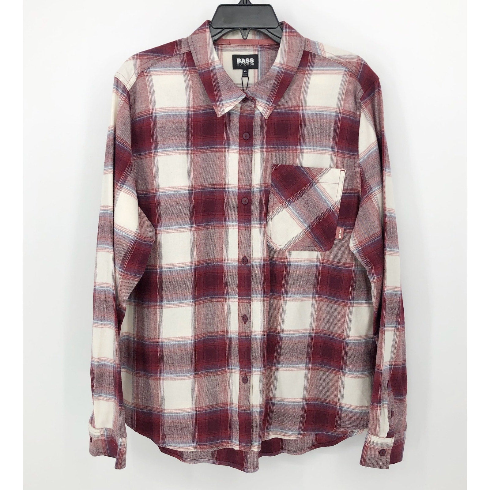 BASS OUTDOOR Men's Expedition Stretch Flannel Shirt XL Red White Plaid NWT