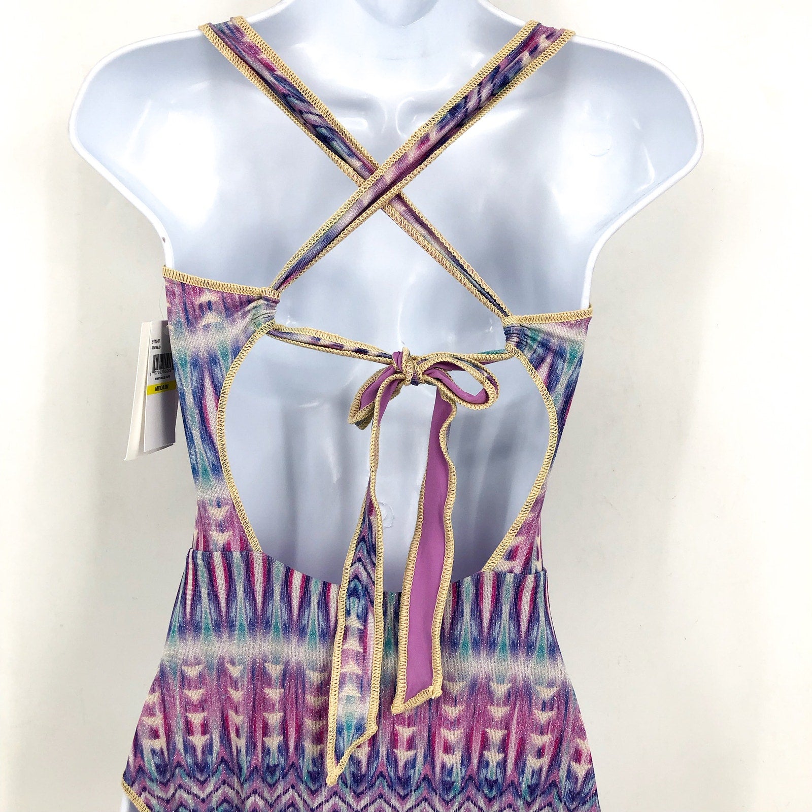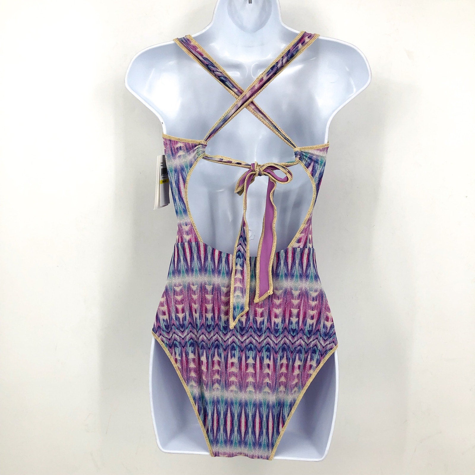 BECCA Women's Standard Tulum One Piece Swimsuit Large Purple Abstract Print NWT