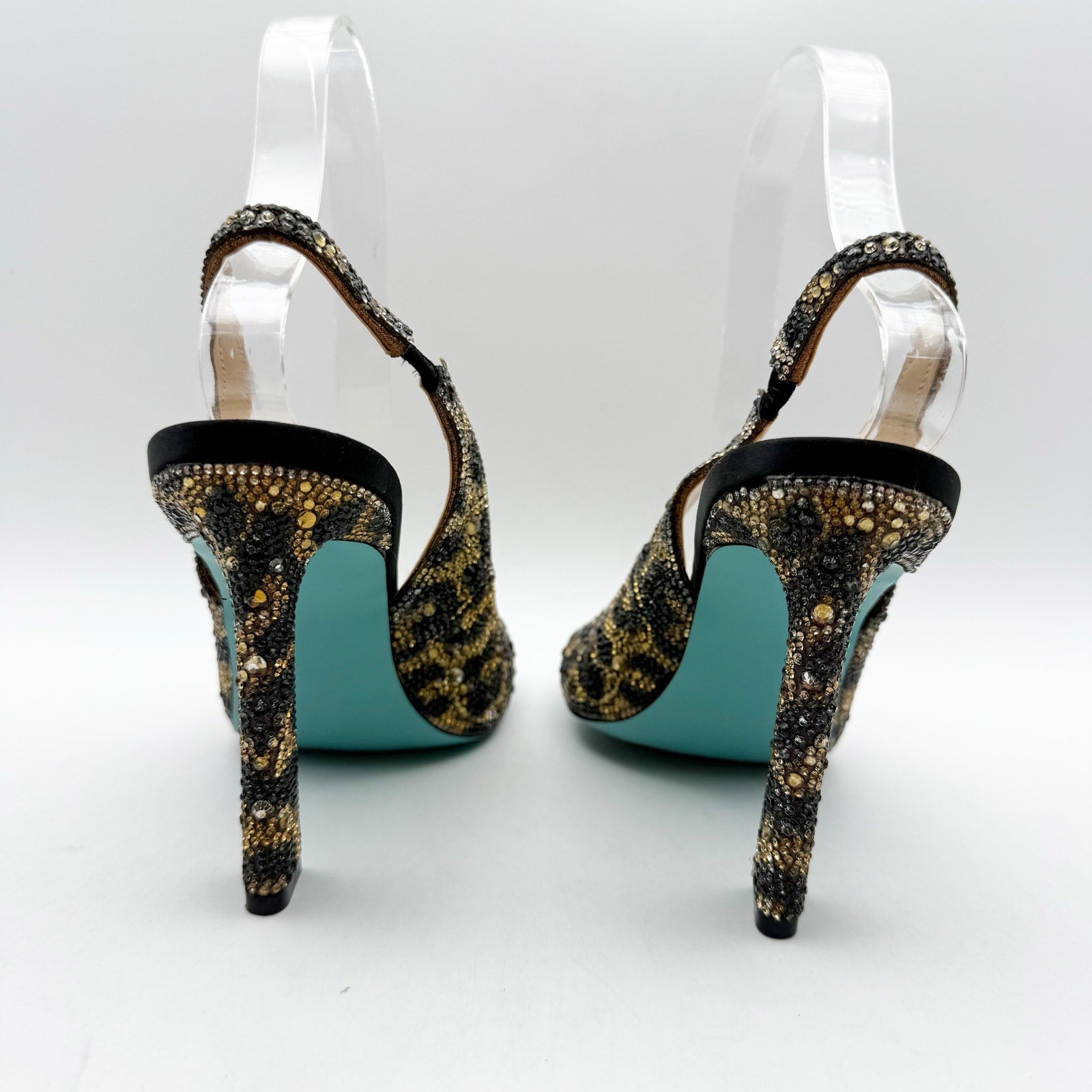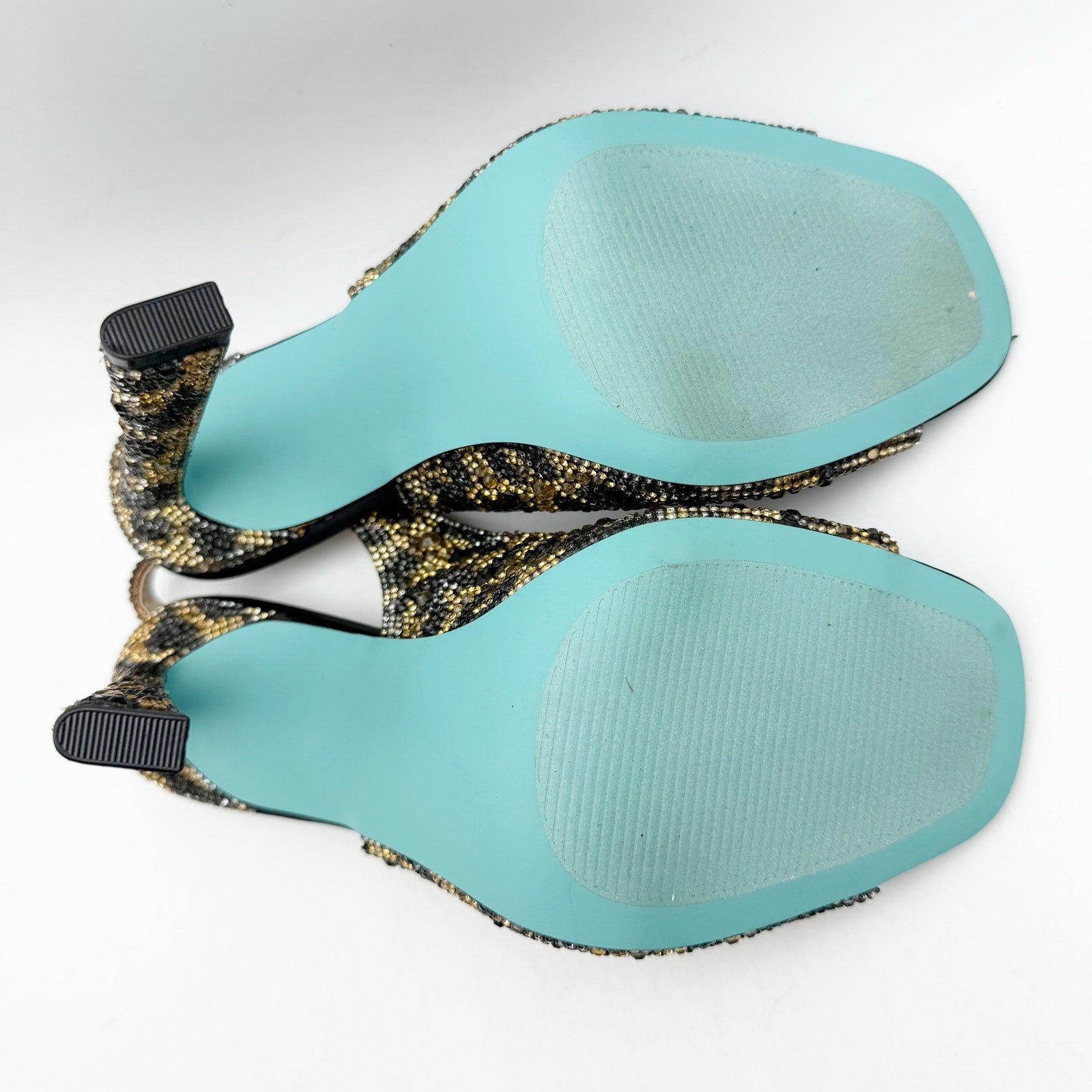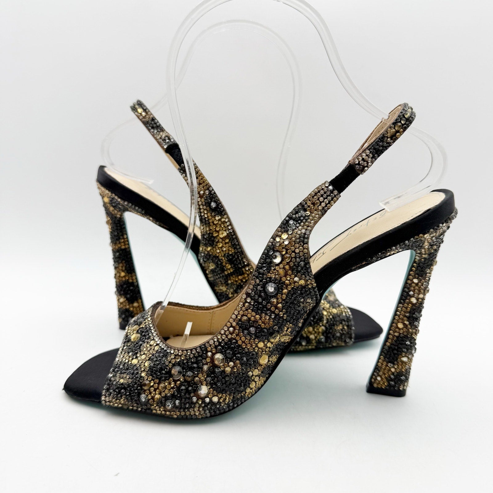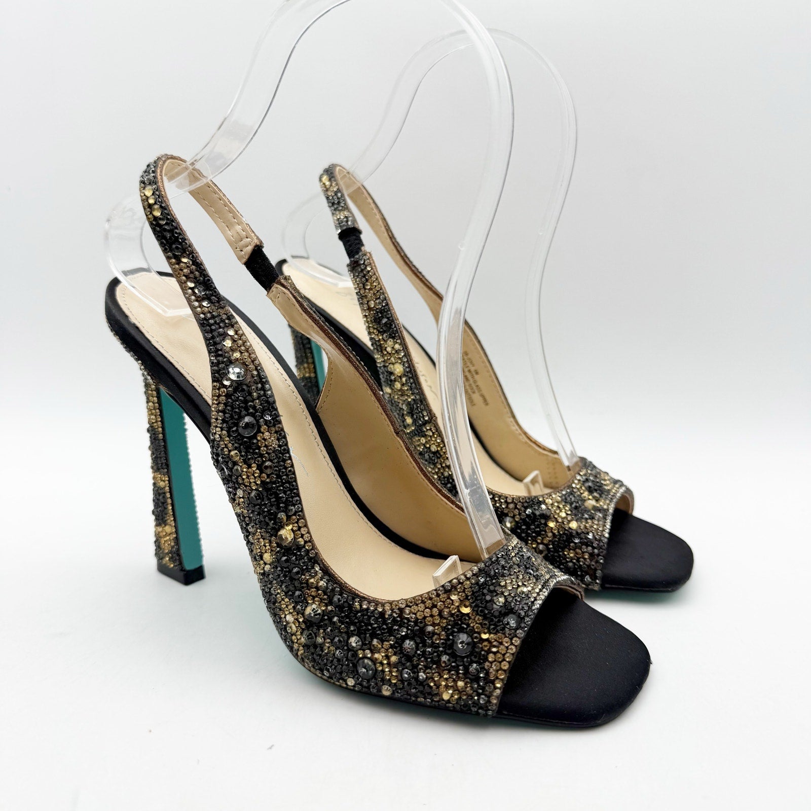 Betsey Johnson Womens Mina Heeled Sandals US 6 M Black Gold Rhinestone NWOB
