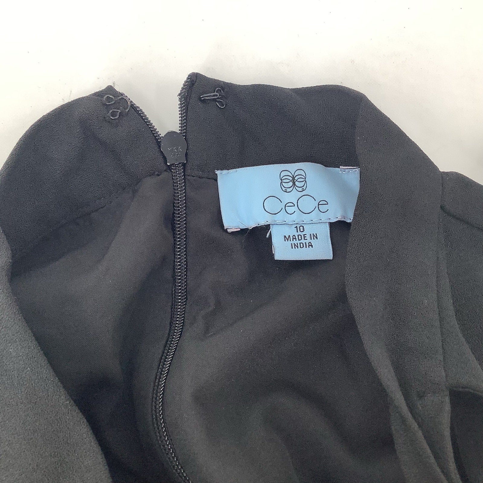 CECE Ruffled Bow Neck Short Sleeve Mini Dress Black Size 10