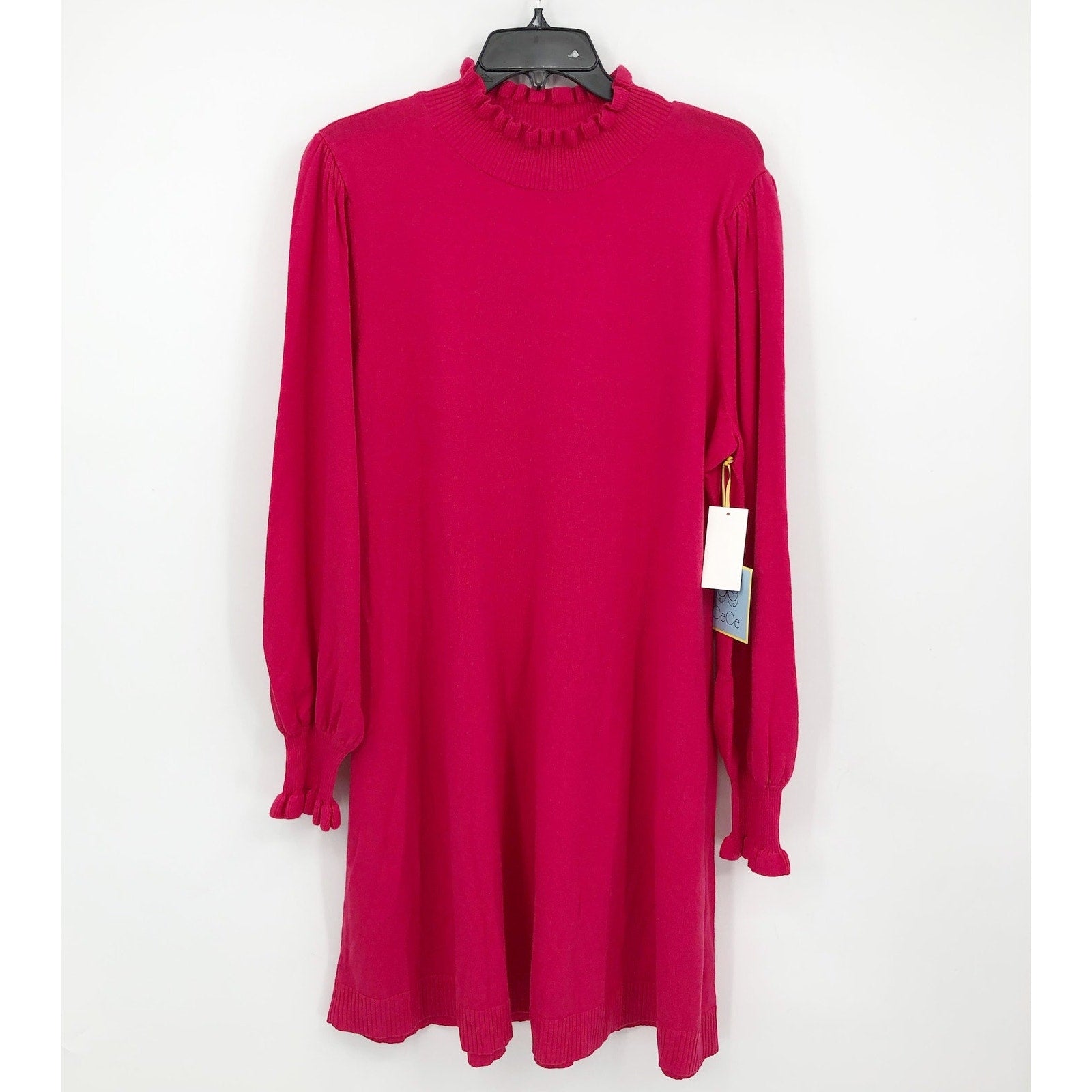 CECE Ruffled Sweater Dress Rich Magenta SMALL