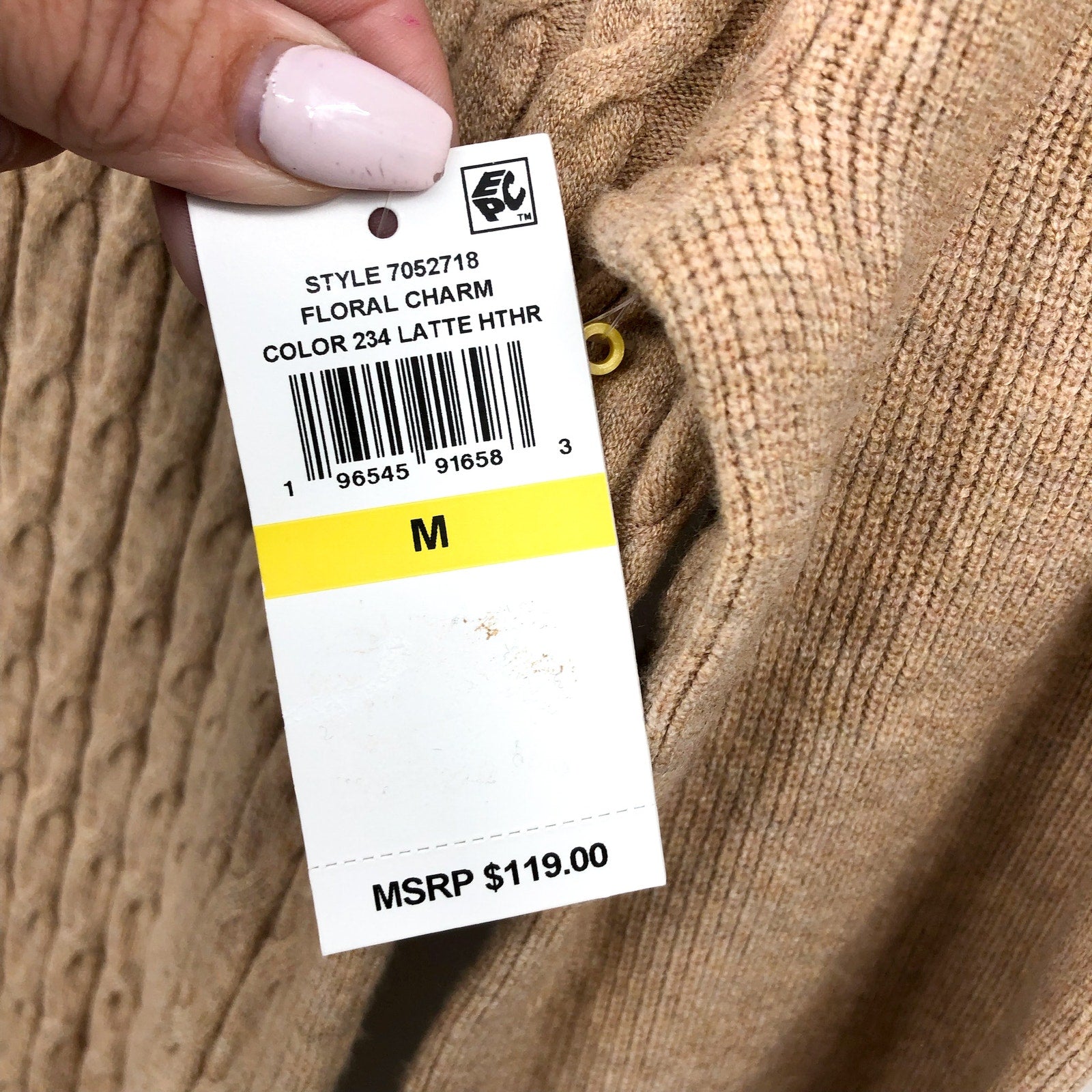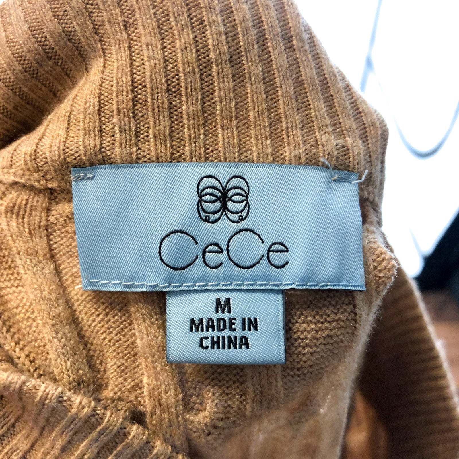 CECE Women's Cable Stitch Sweater Dress Medium Tan Mock Neck Long Sleeve NWT