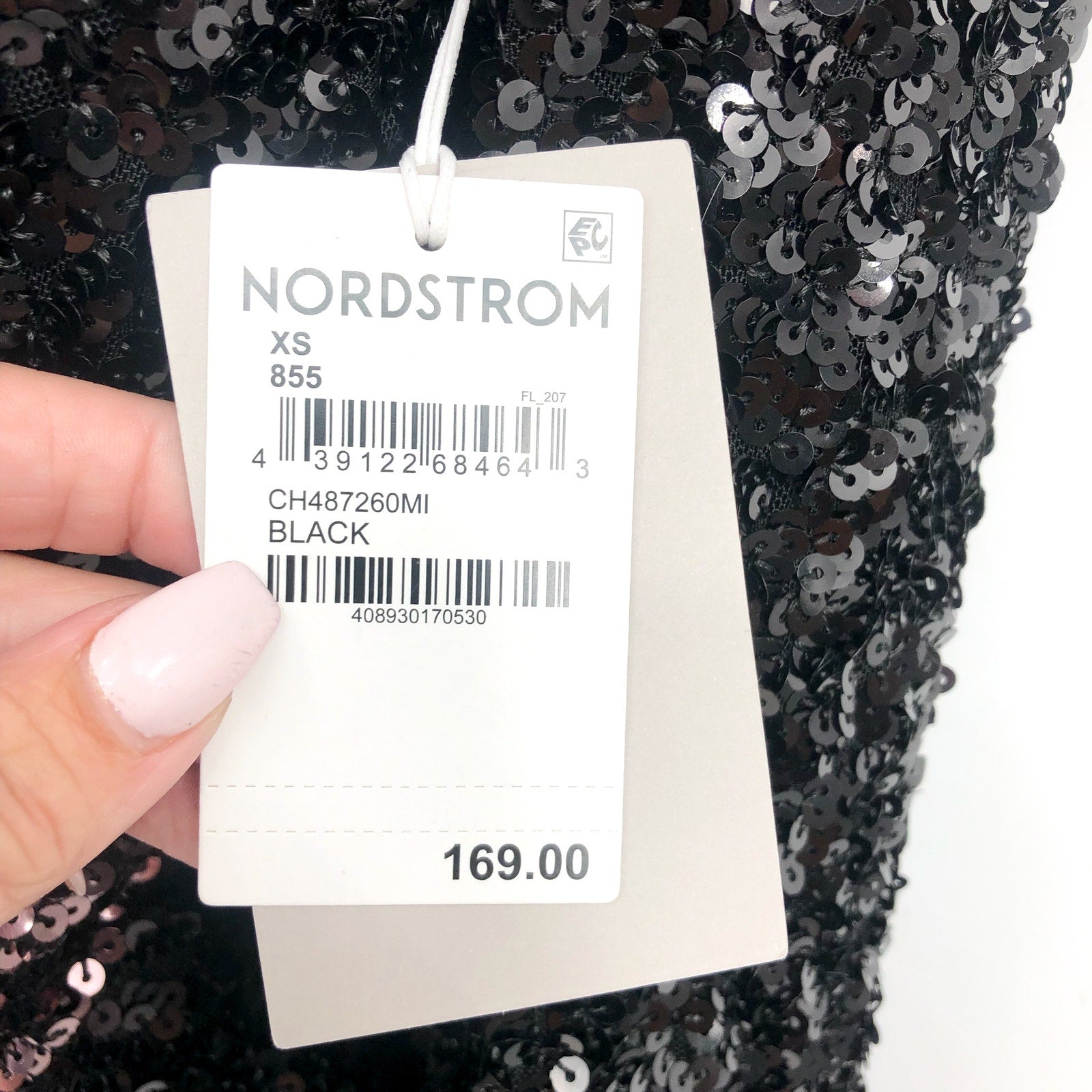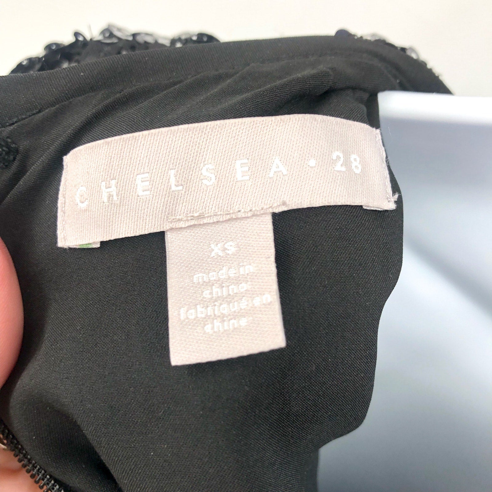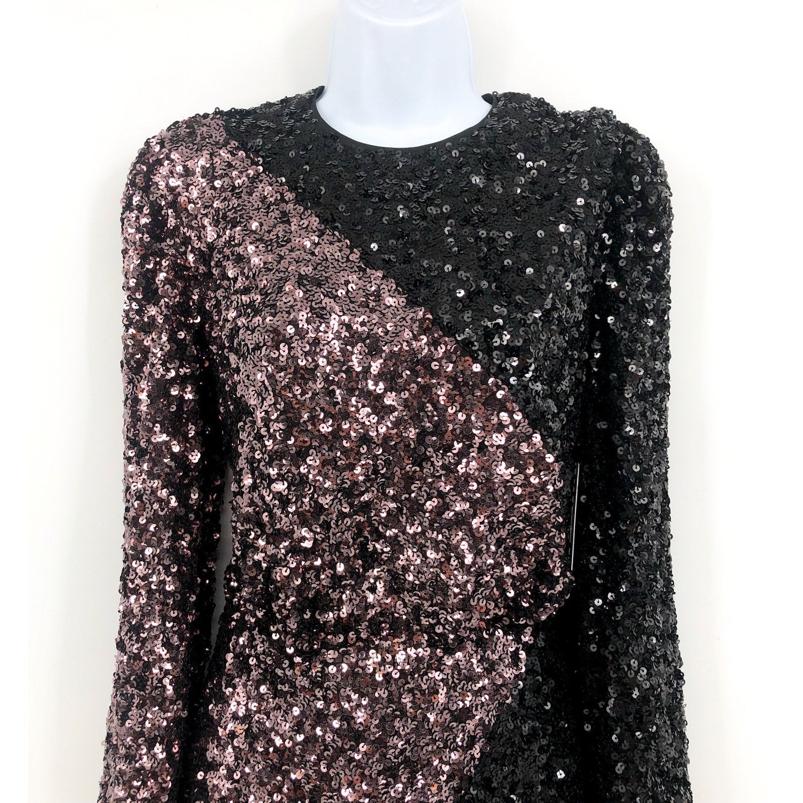 CHELSEA28 Colorblock Sequin Cocktail Dress XS Black Long Sleeve NWT