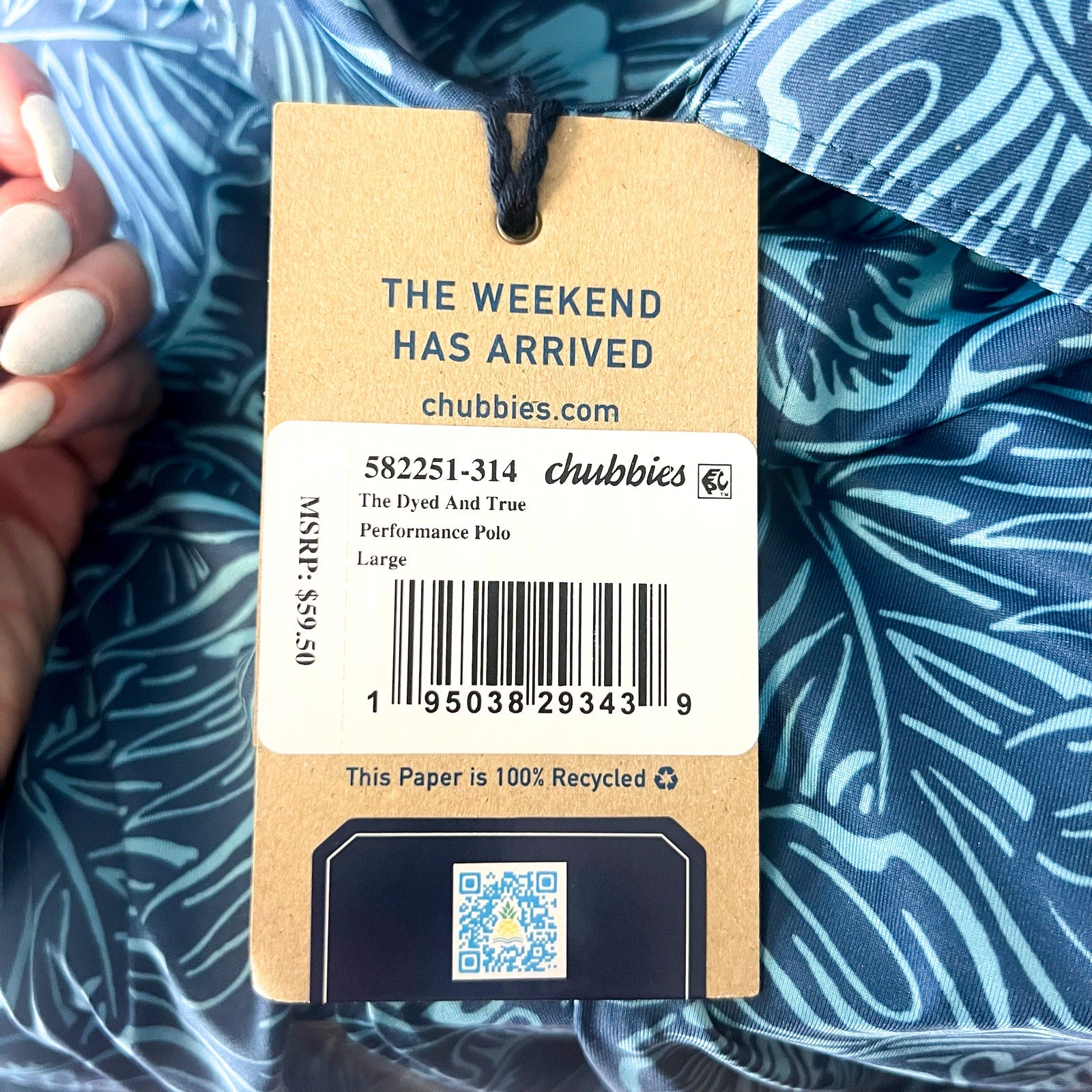 CHUBBIES Mens Performance Polo Shirt Large Blue Dyed And True Print SS NWT