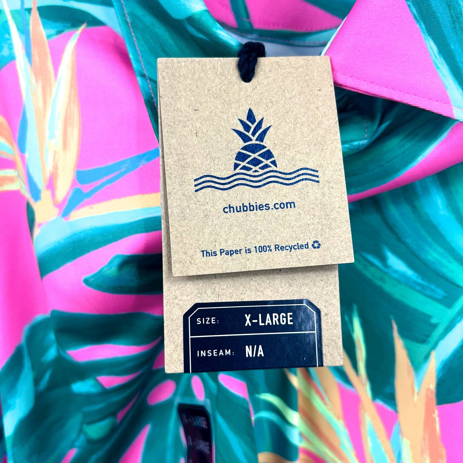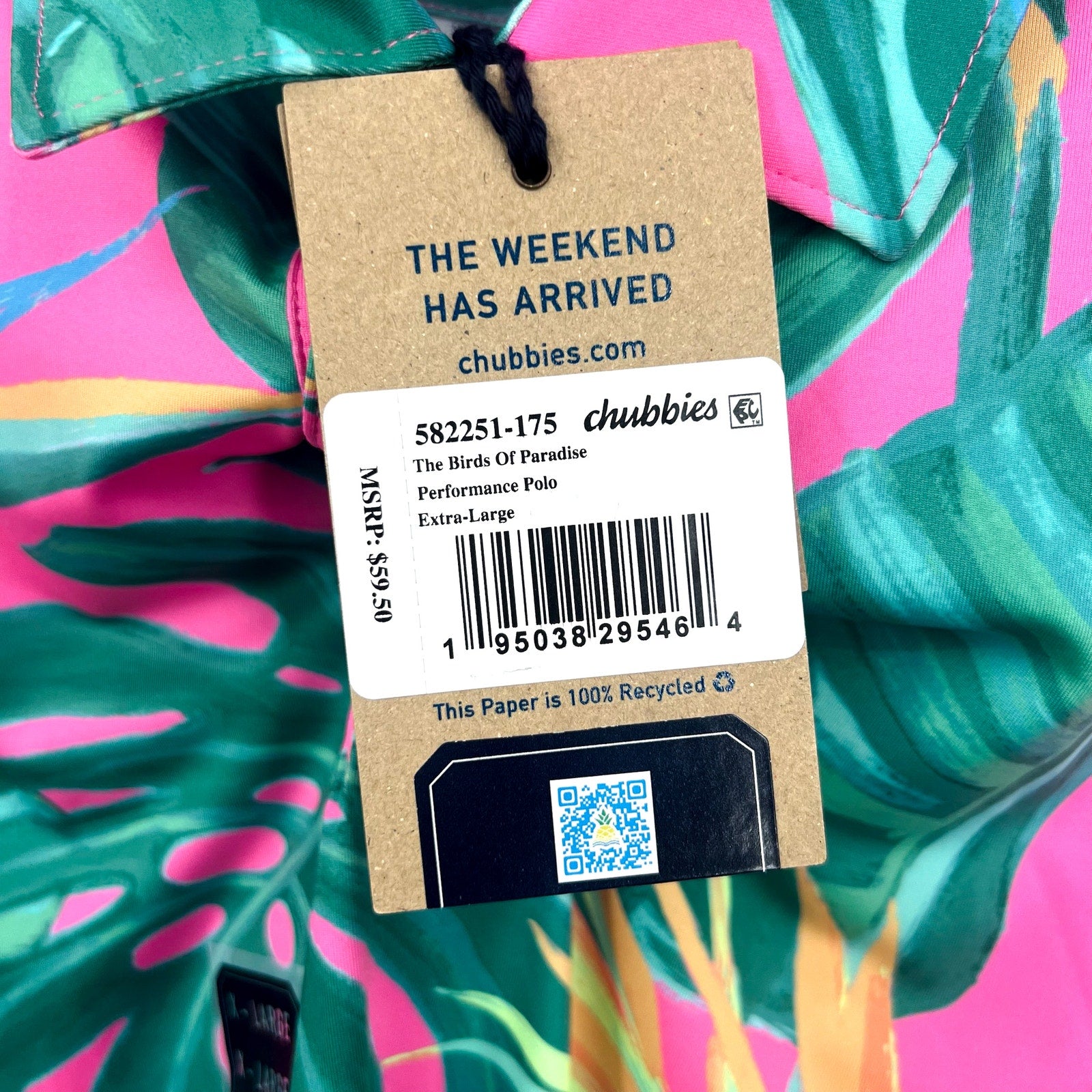 CHUBBIES Mens Performance Polo XL Pink Green Birds of Paradise Short Sleeve NWT