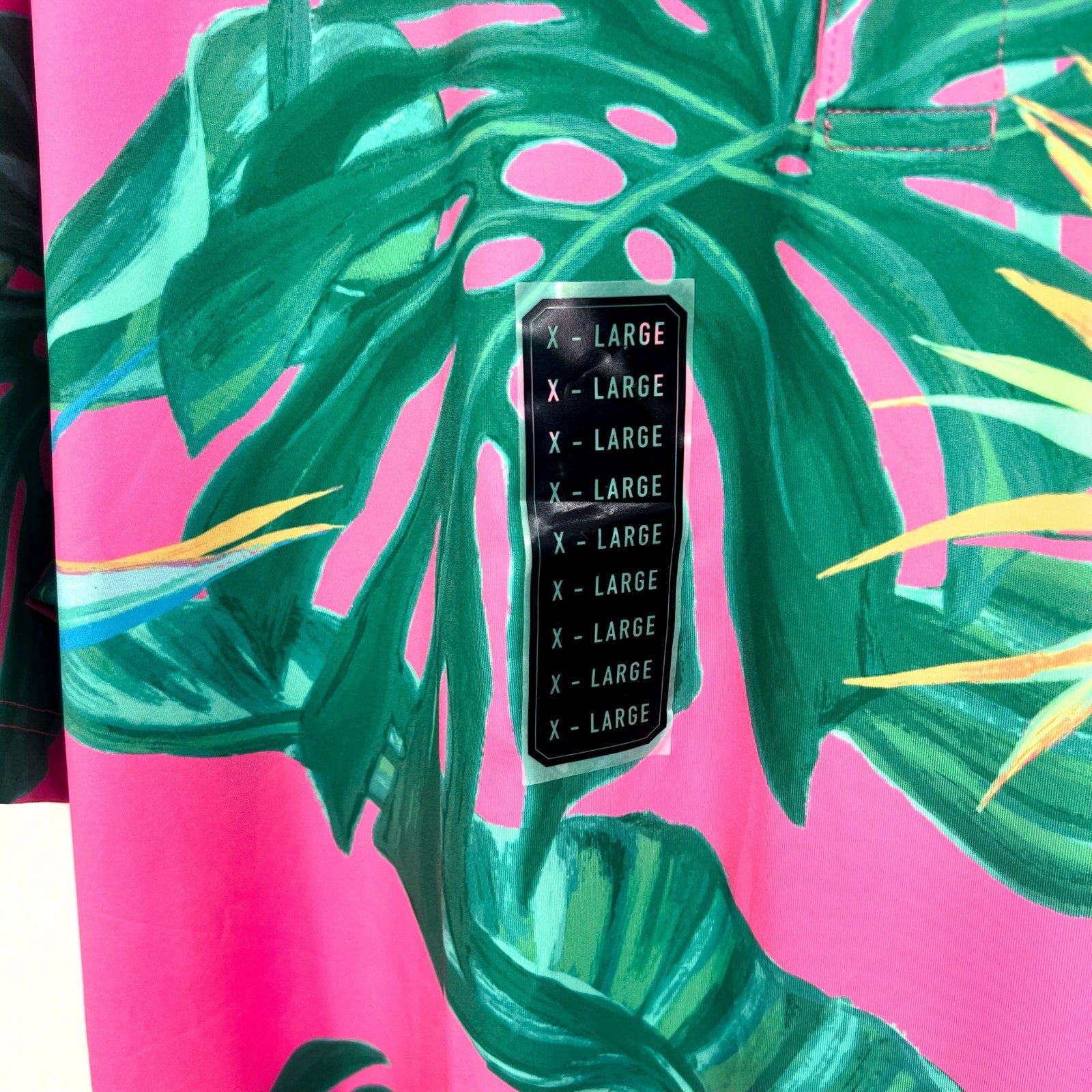 - Tropical design on the entire shirt