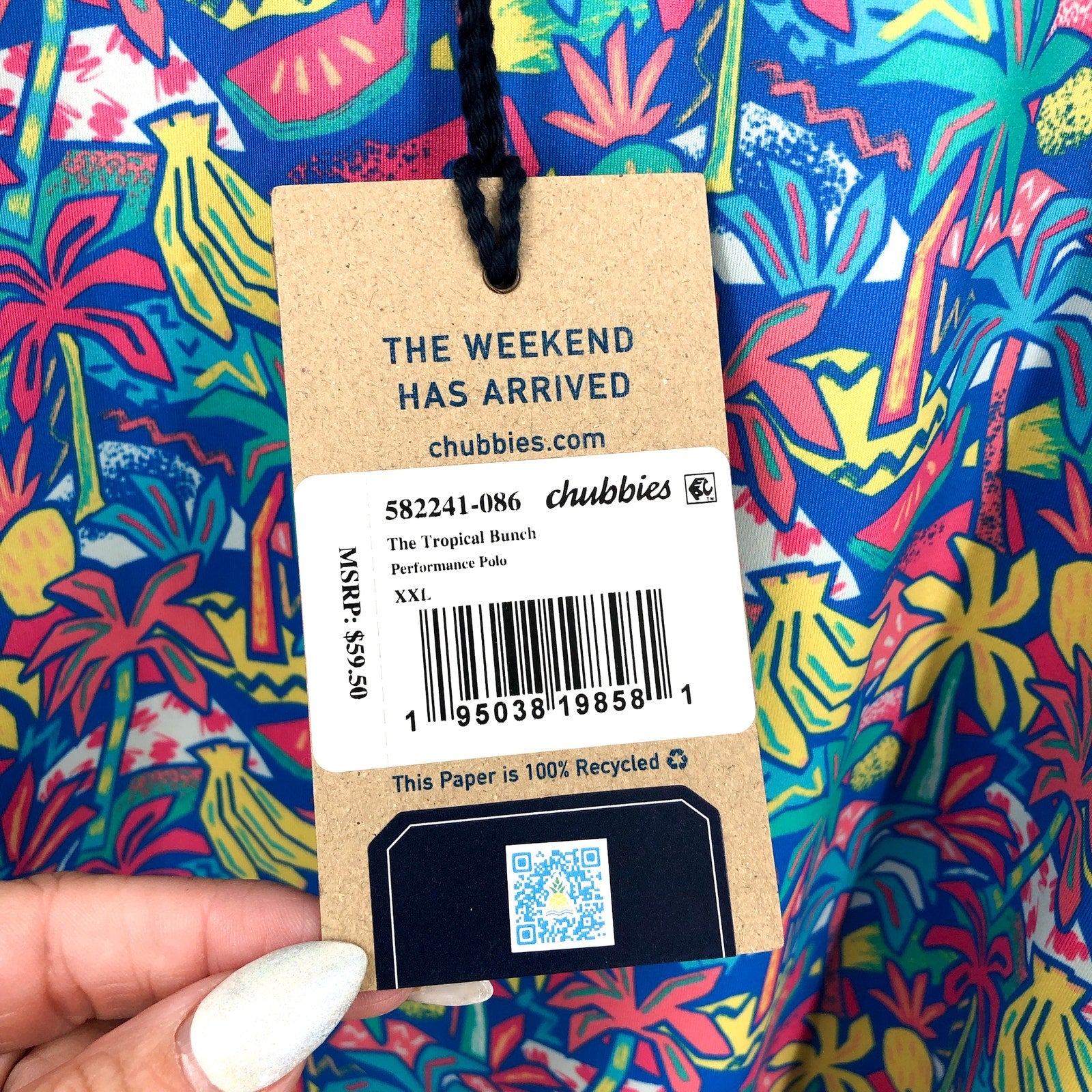 CHUBBIES Mens Performance Polo XXL Blue Multi Tropical Bunch Short Sleeve NWT