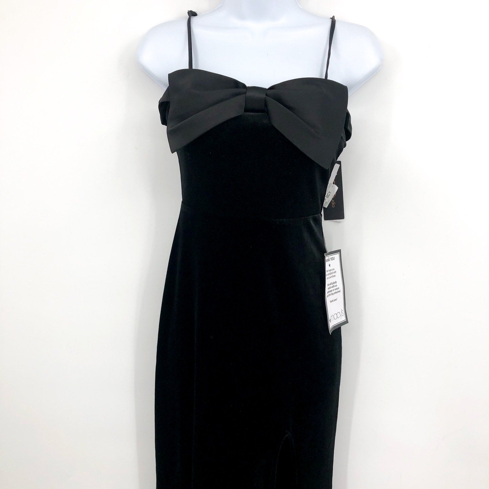 CITY STUDIO Bow-Neckband Long Velvet Gown Size 3-4 Black Formal NWT
