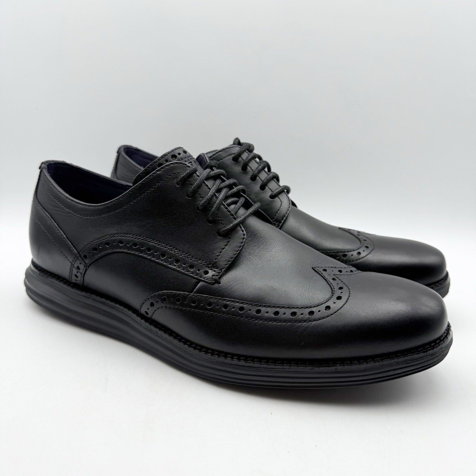 Cole Haan Mens Original Grand Wing Tip Oxford Shoes US 11 M Black Leather NWOB