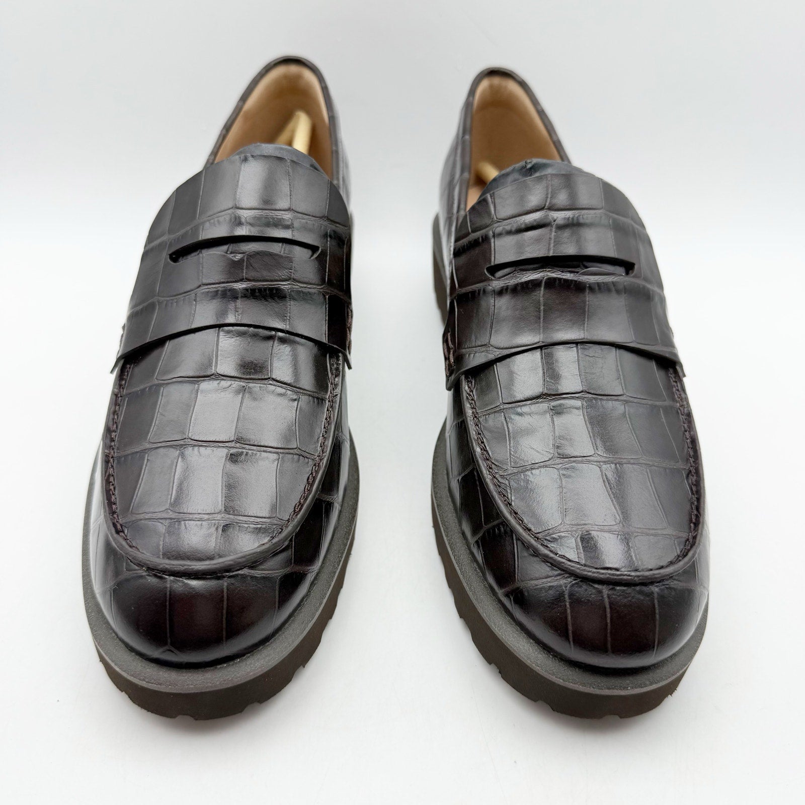 Cole Haan Womens Geneva Loafer US 5.5 B EU 35.5 Brown Croc Leather Lugged NIB