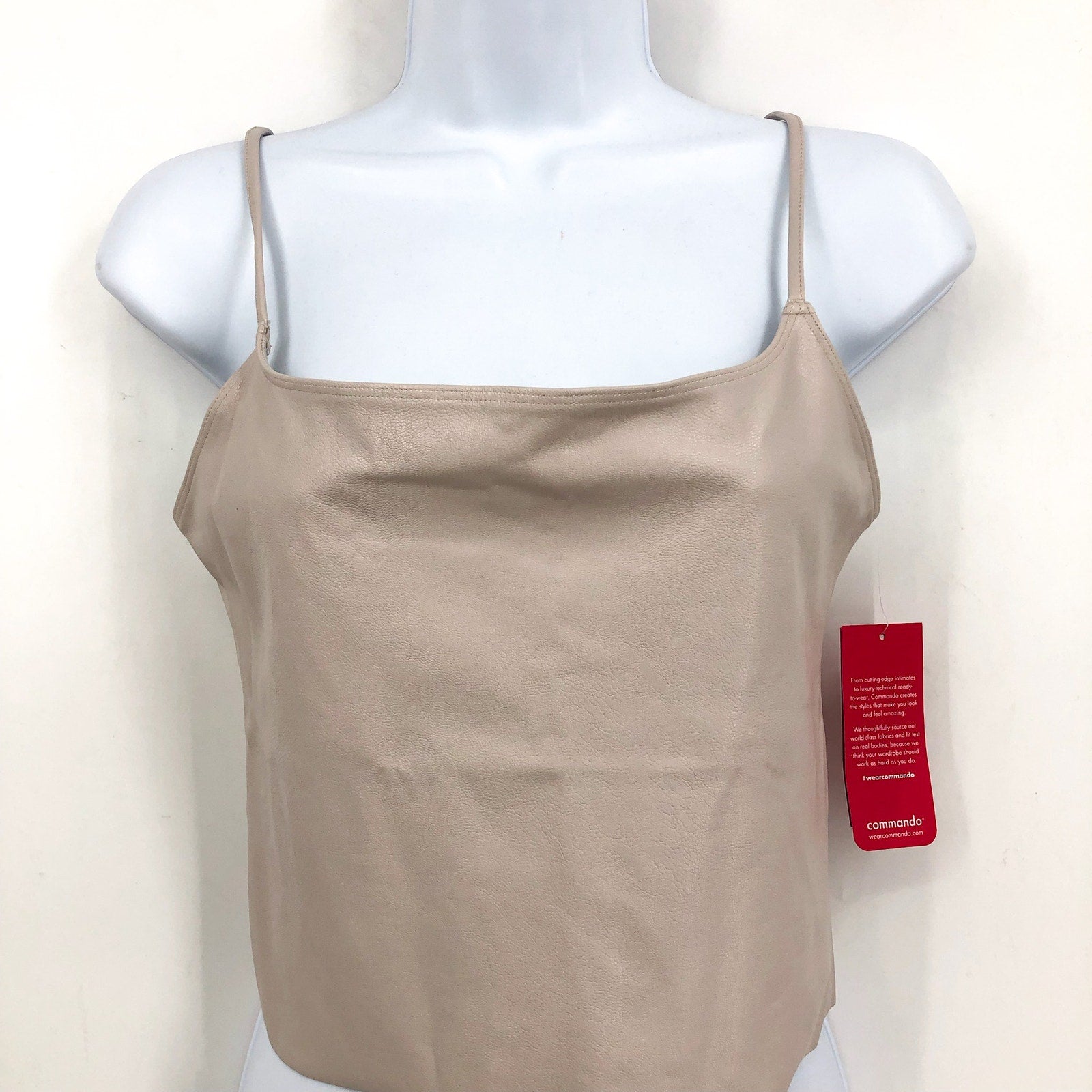 COMMANDO Womens Faux Leather Cami Crop Top Medium Beige Porcelain Stretch NWT