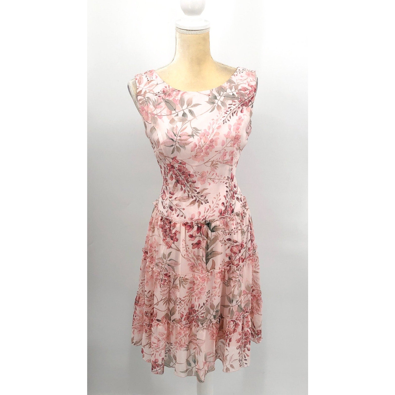 CONNECTED APPAREL Women's Sleeveless Chiffon Dress Size 4 Pink Floral Print NWT