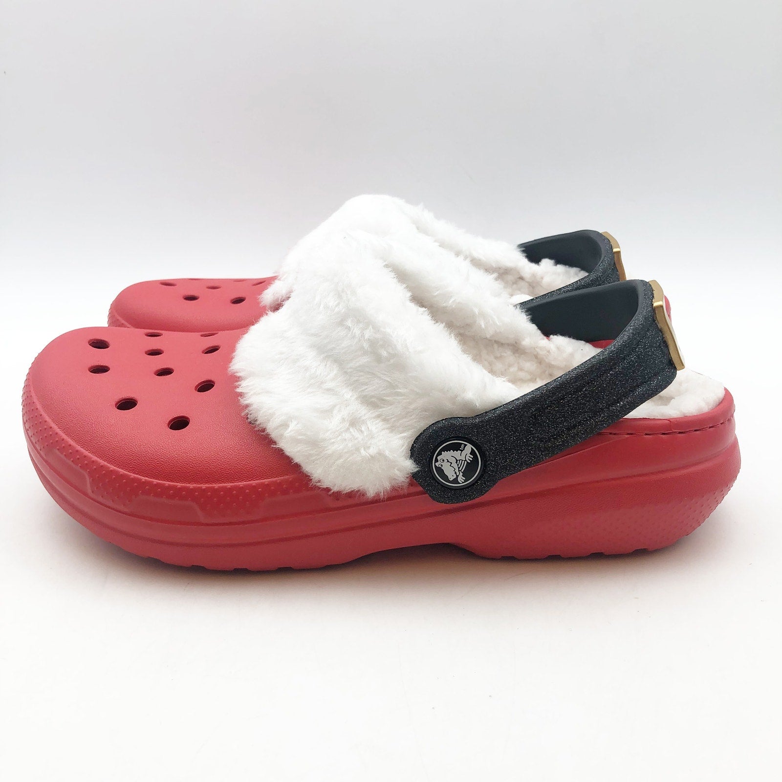 Crocs Unisex Kids Santa Classic Clogs Size J 2 Festive Red White Black NWT