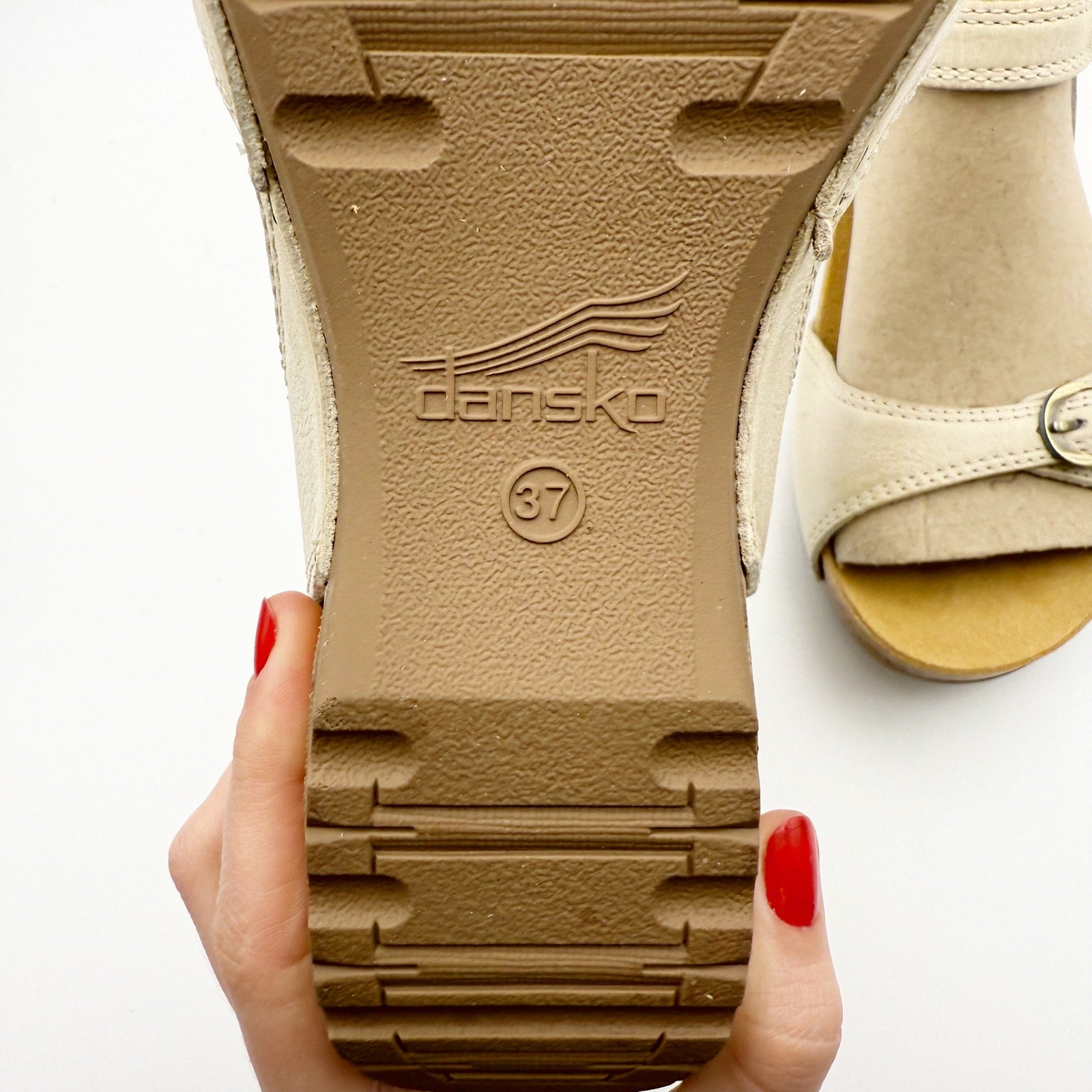 Dansko Womens Tricia Wedge Sandal EU 37 US 6.5-7 Beige Linen Leather Shoe NIB