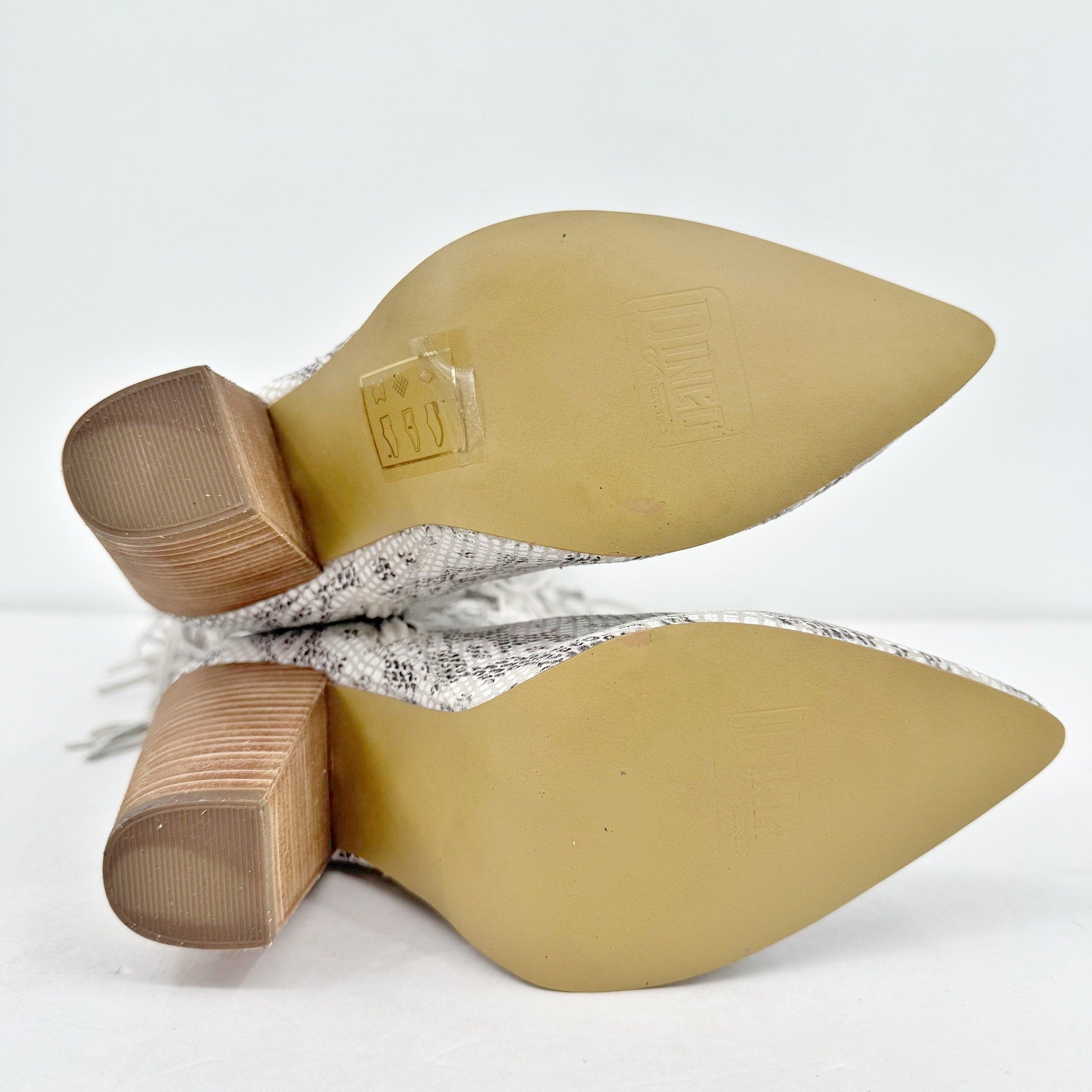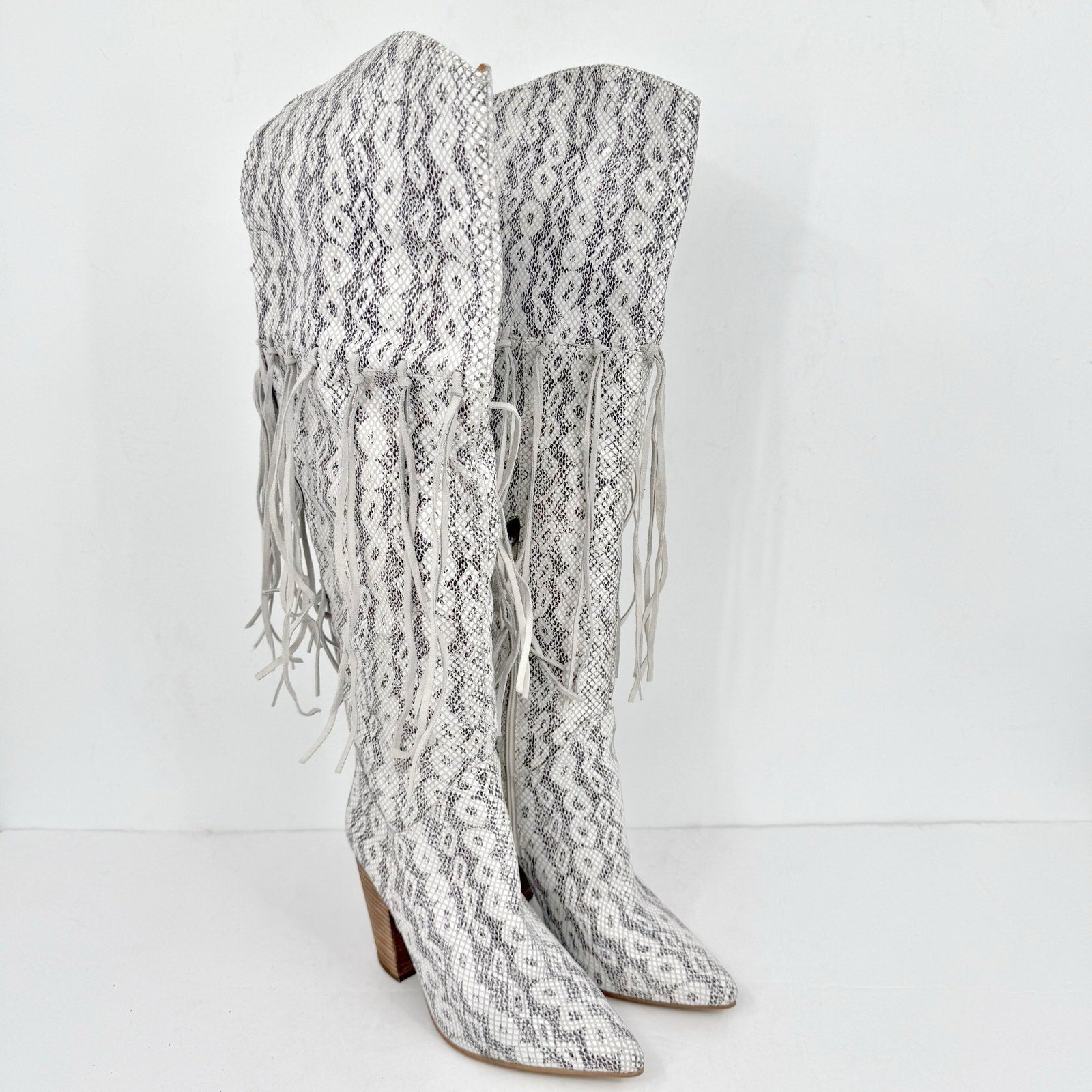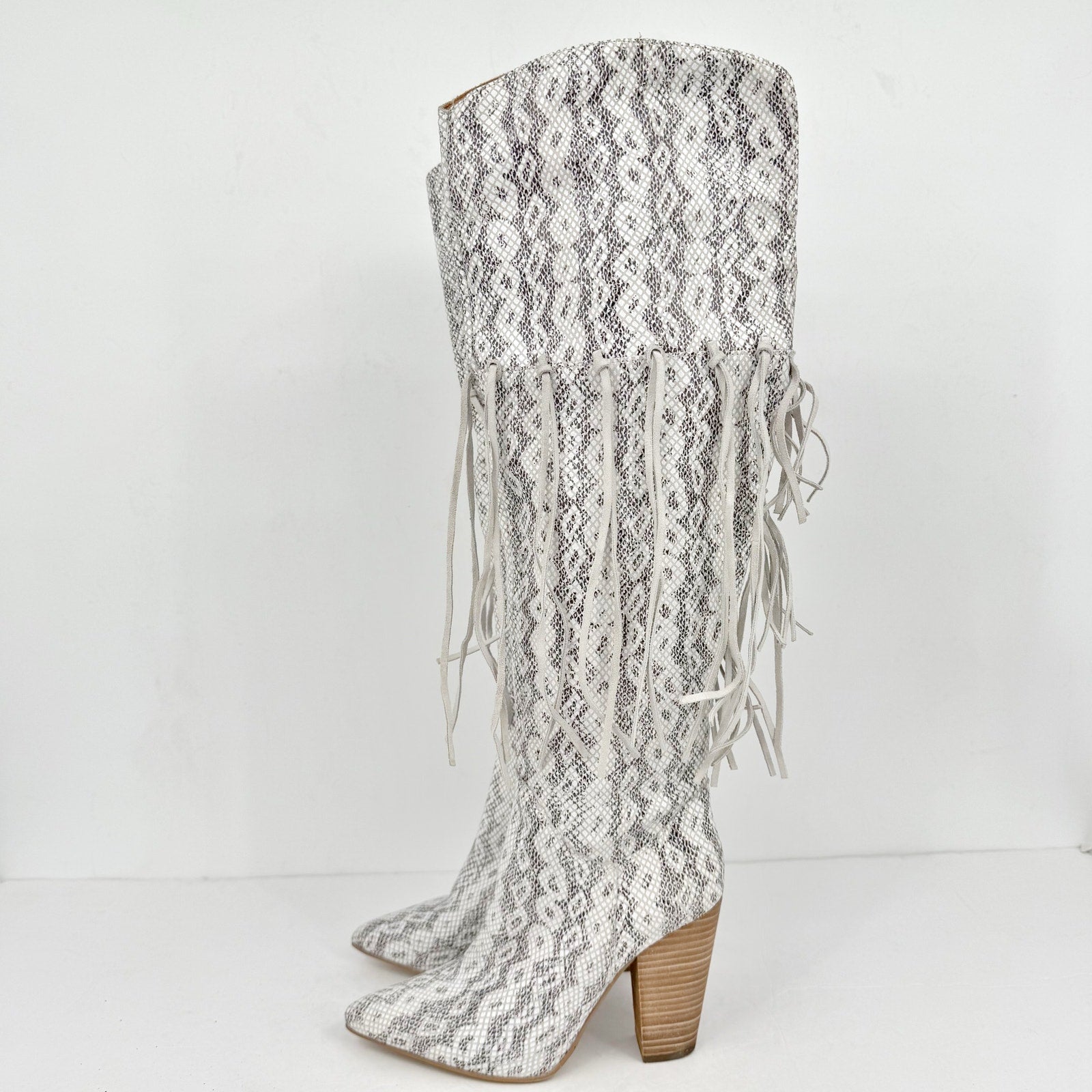 DINGO Womens Kitty Kat Fringe Snake Snip Toe Cowboy Boots US 8.5M White
