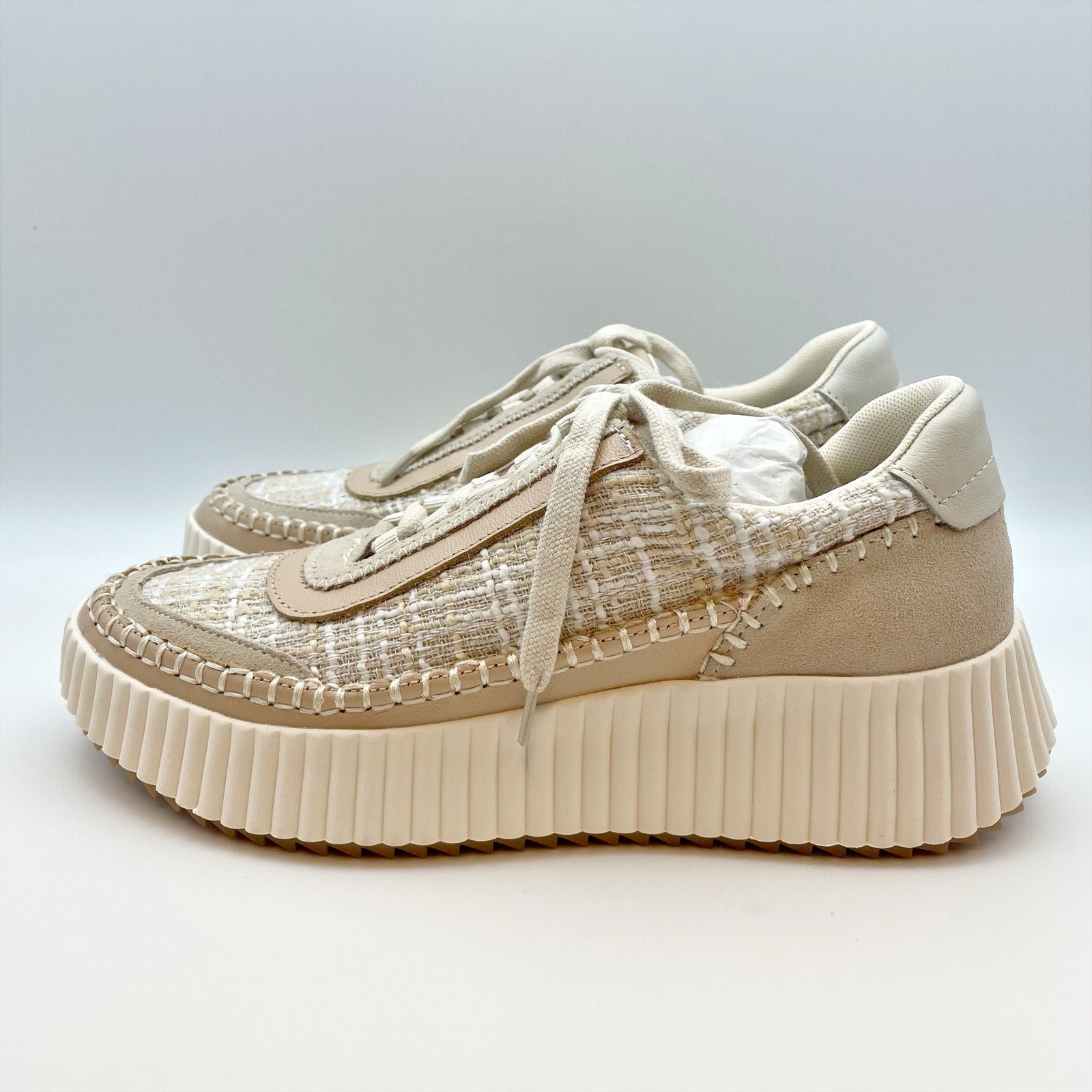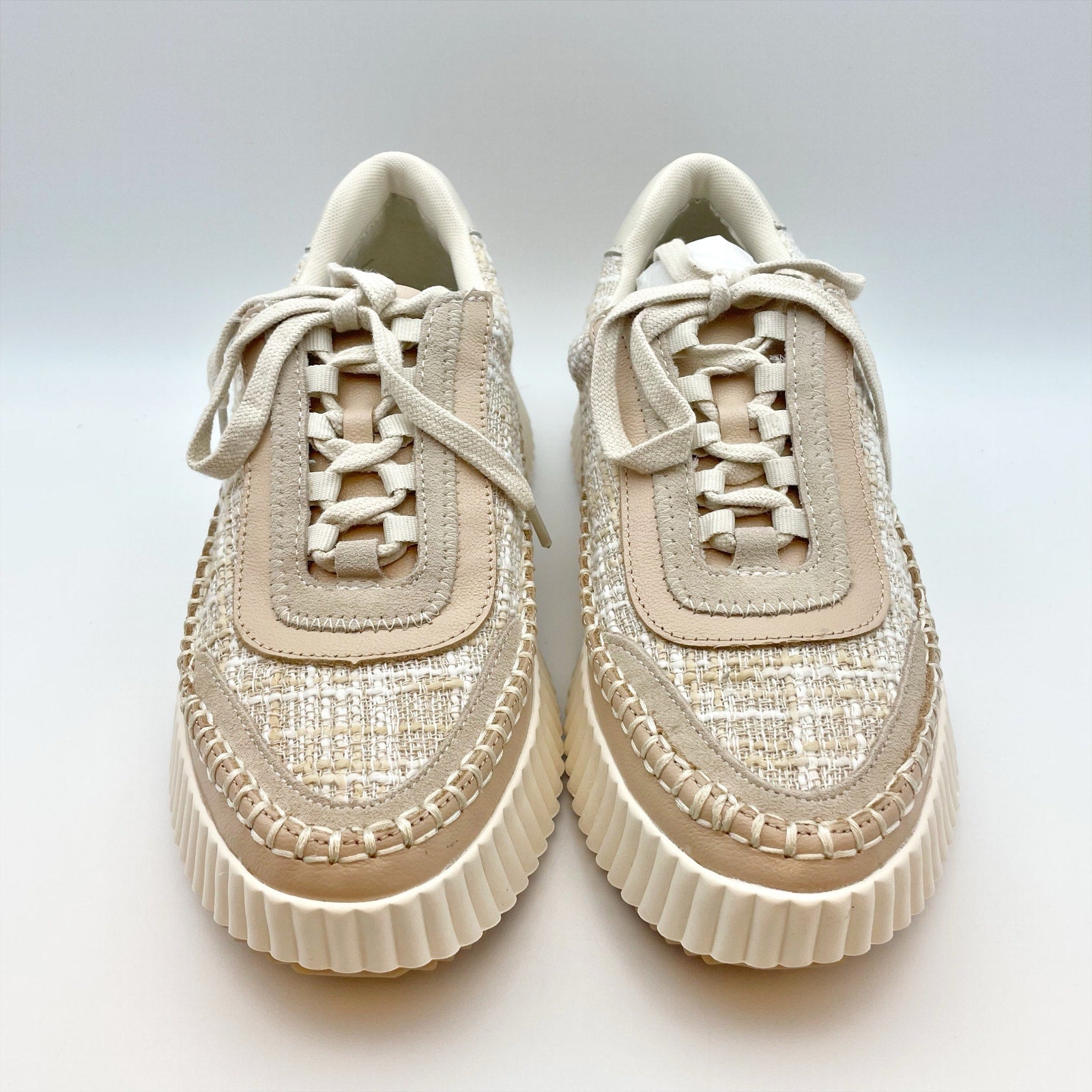 Dolce Vita Women's Dolen Leather Sneaker Size 7 Ivory Tan Lace-Up Closure NIB