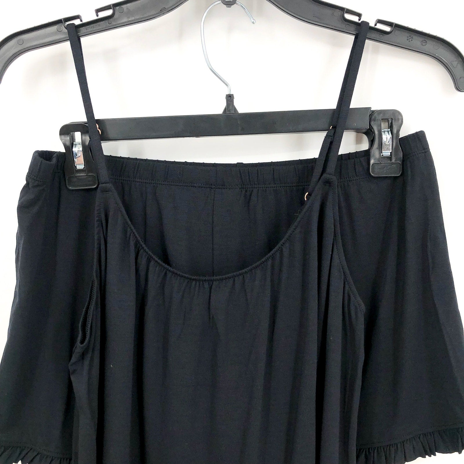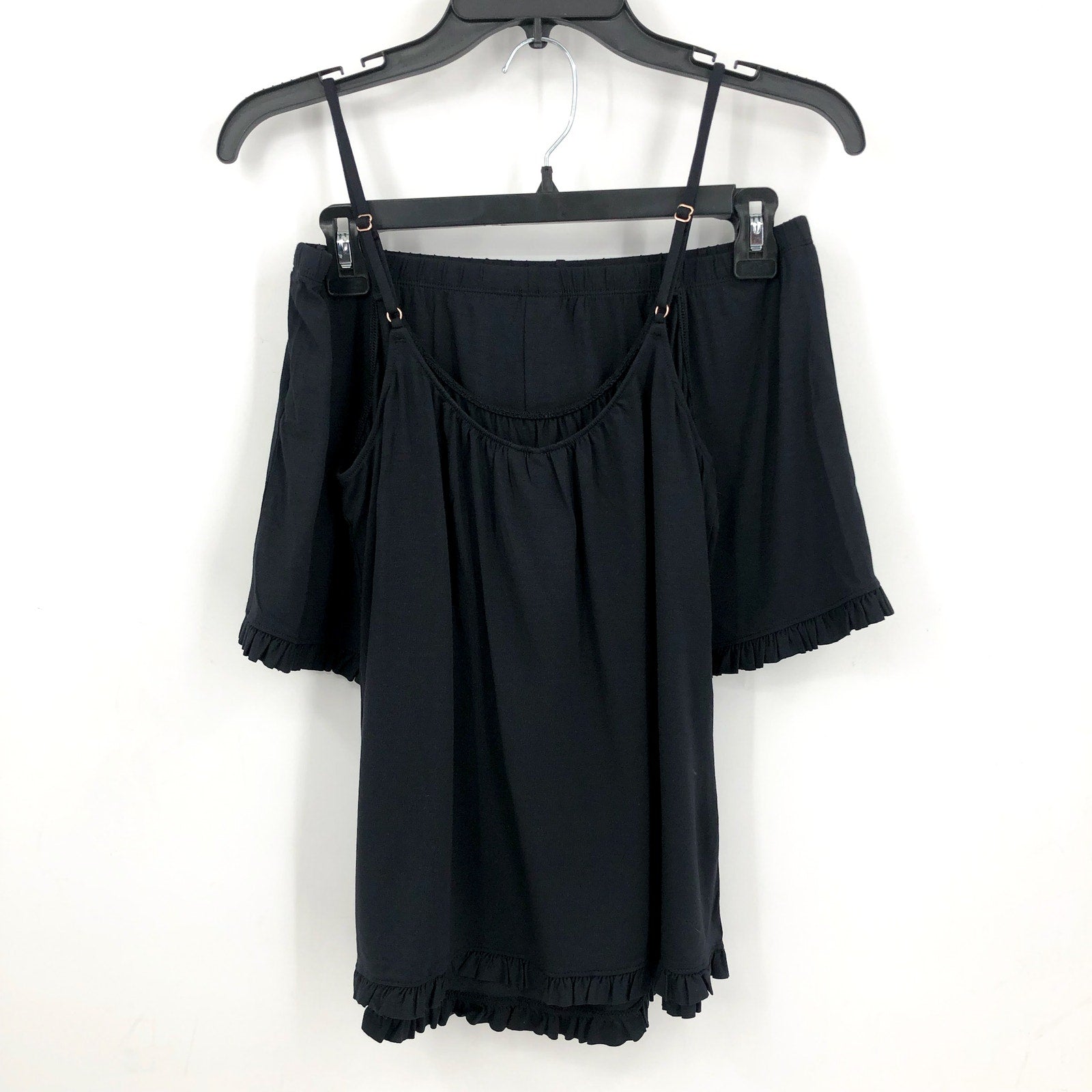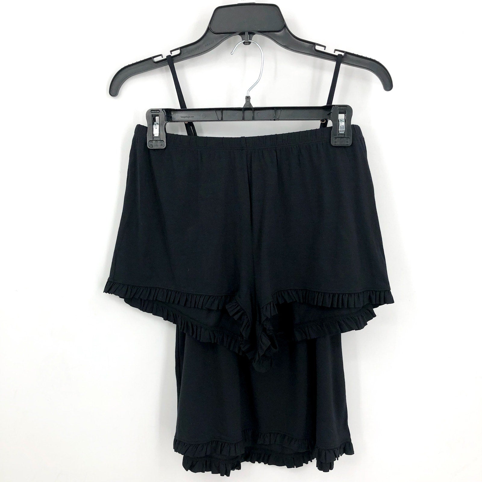 EBERJEY Gisele Ruffle Cami Shortie Short Pajama Set Small Black TENCEL Modal NWT