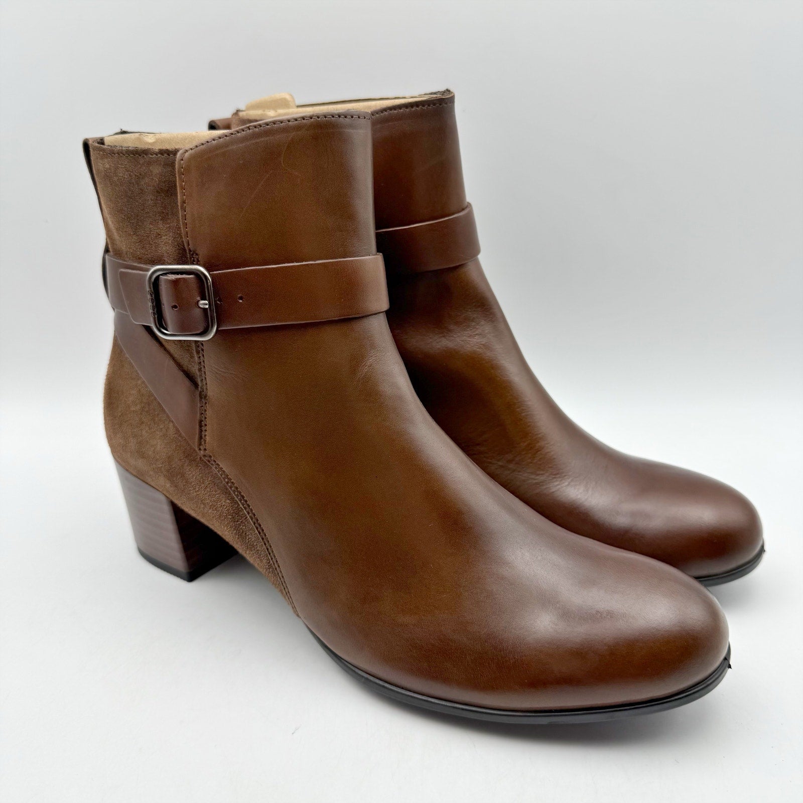 Ecco Womens Dress Classic Ankle Boots EU 40 US 9 Walnut Brown Leather 35 mm NWOB