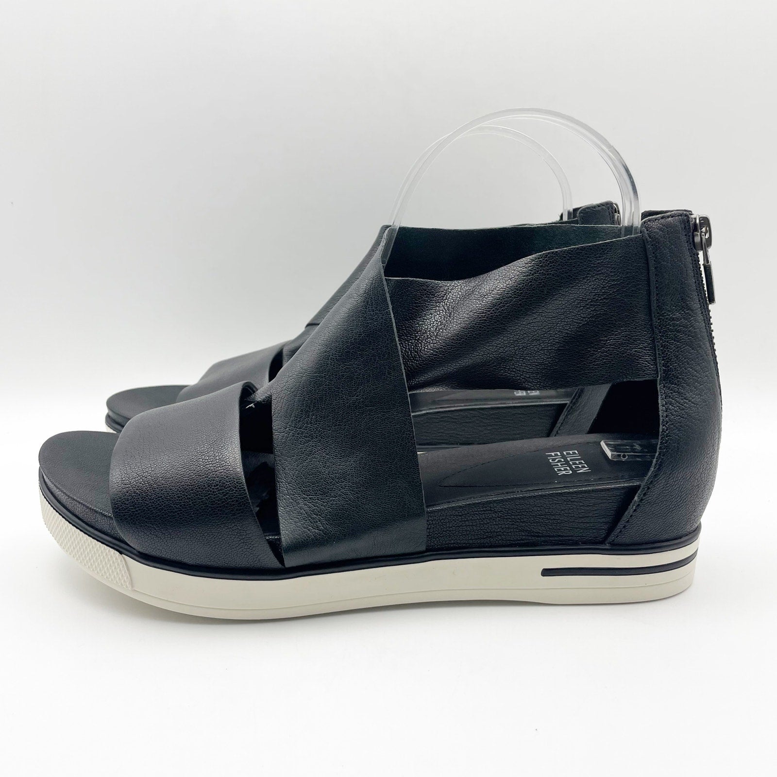 Eileen Fisher Womens Sport Sandals US 9.5 M EU 40 Black Leather NIB