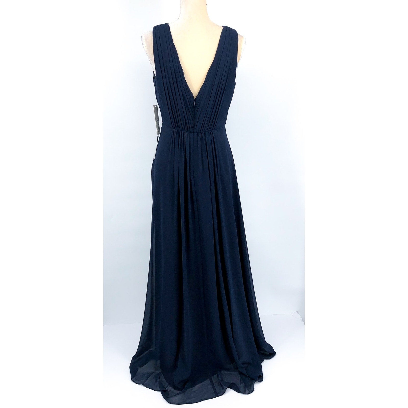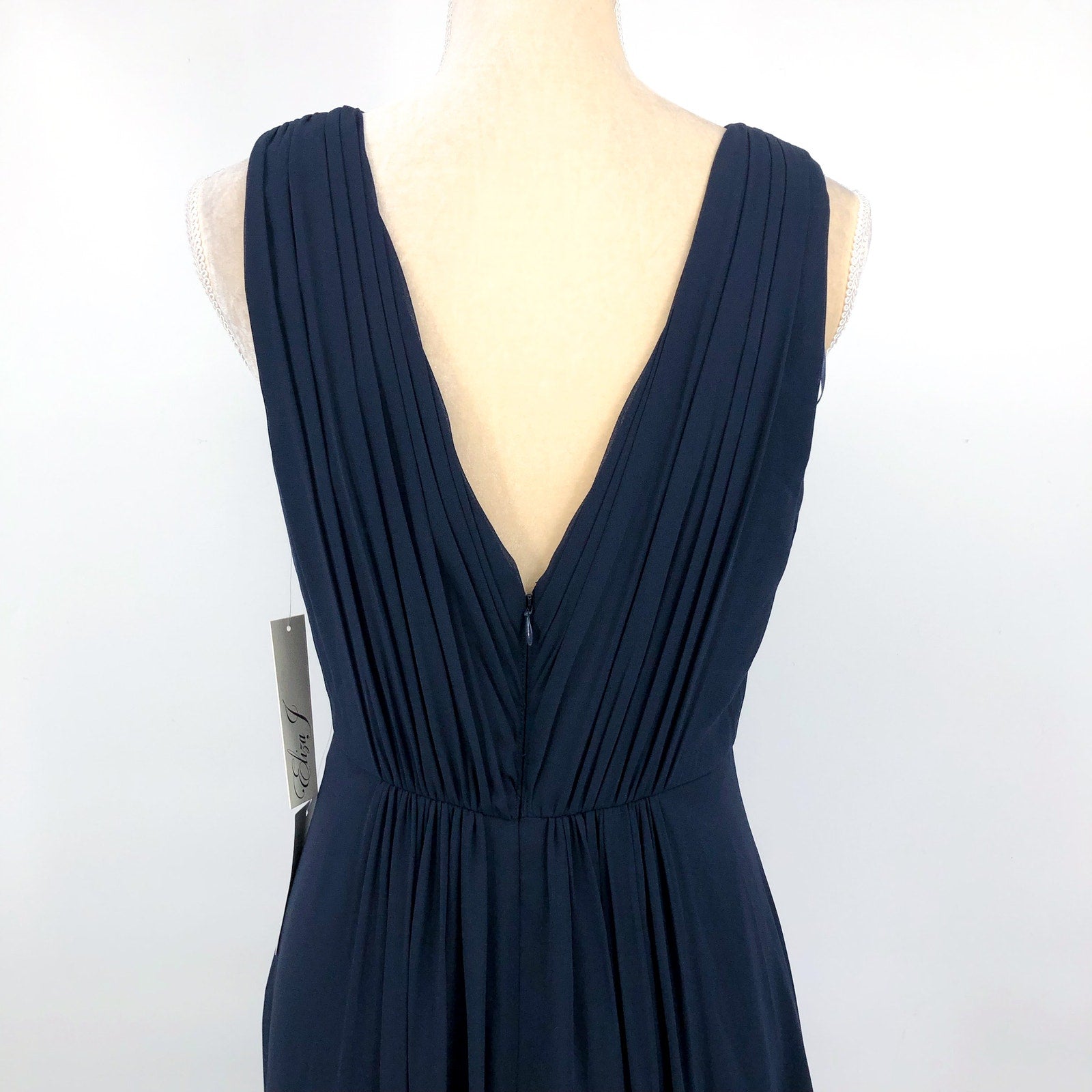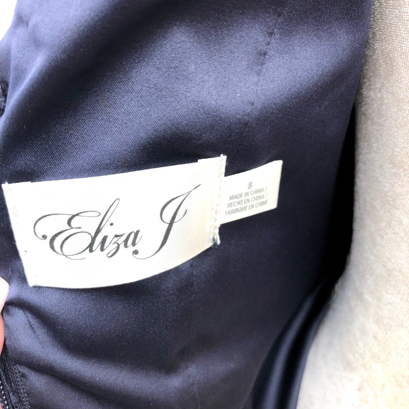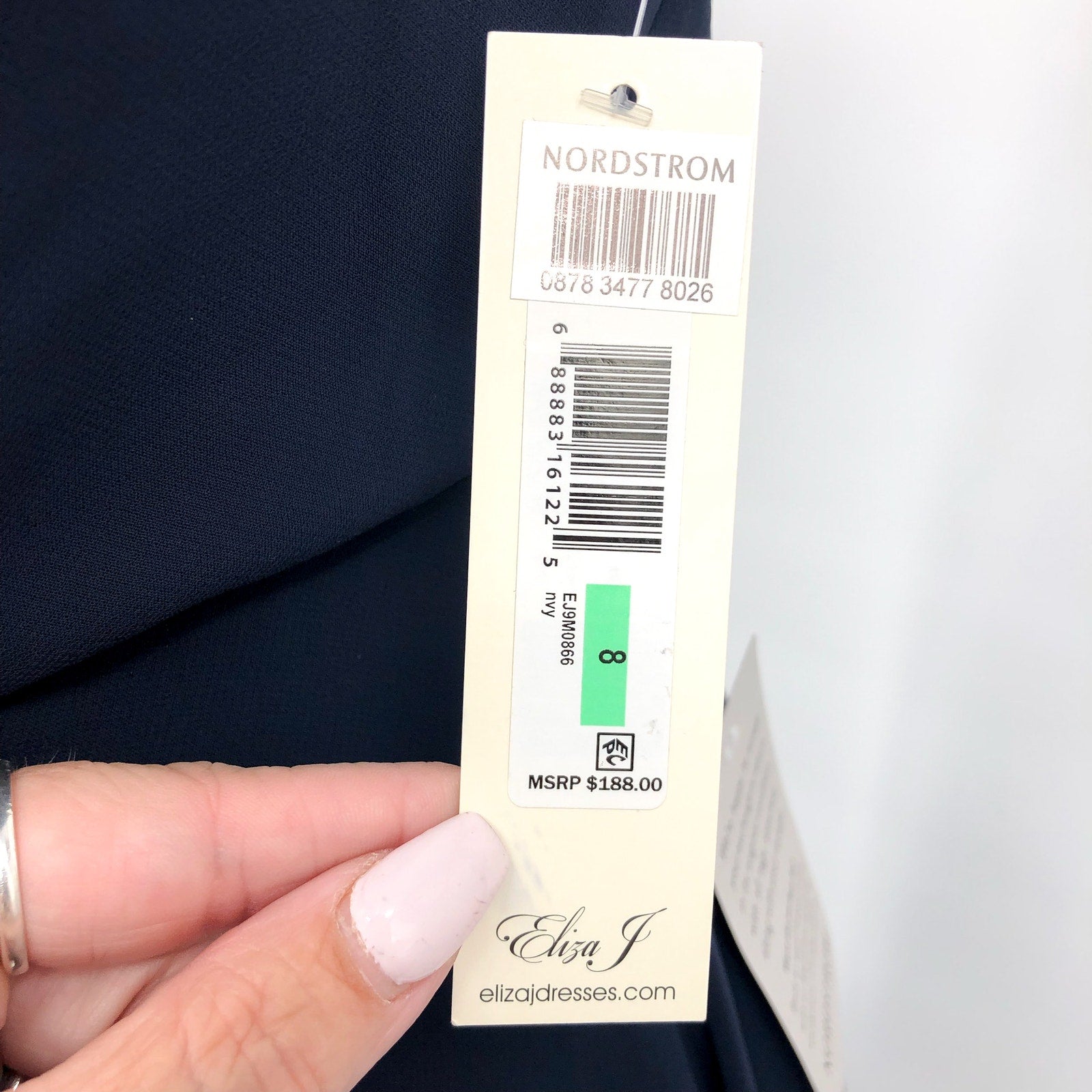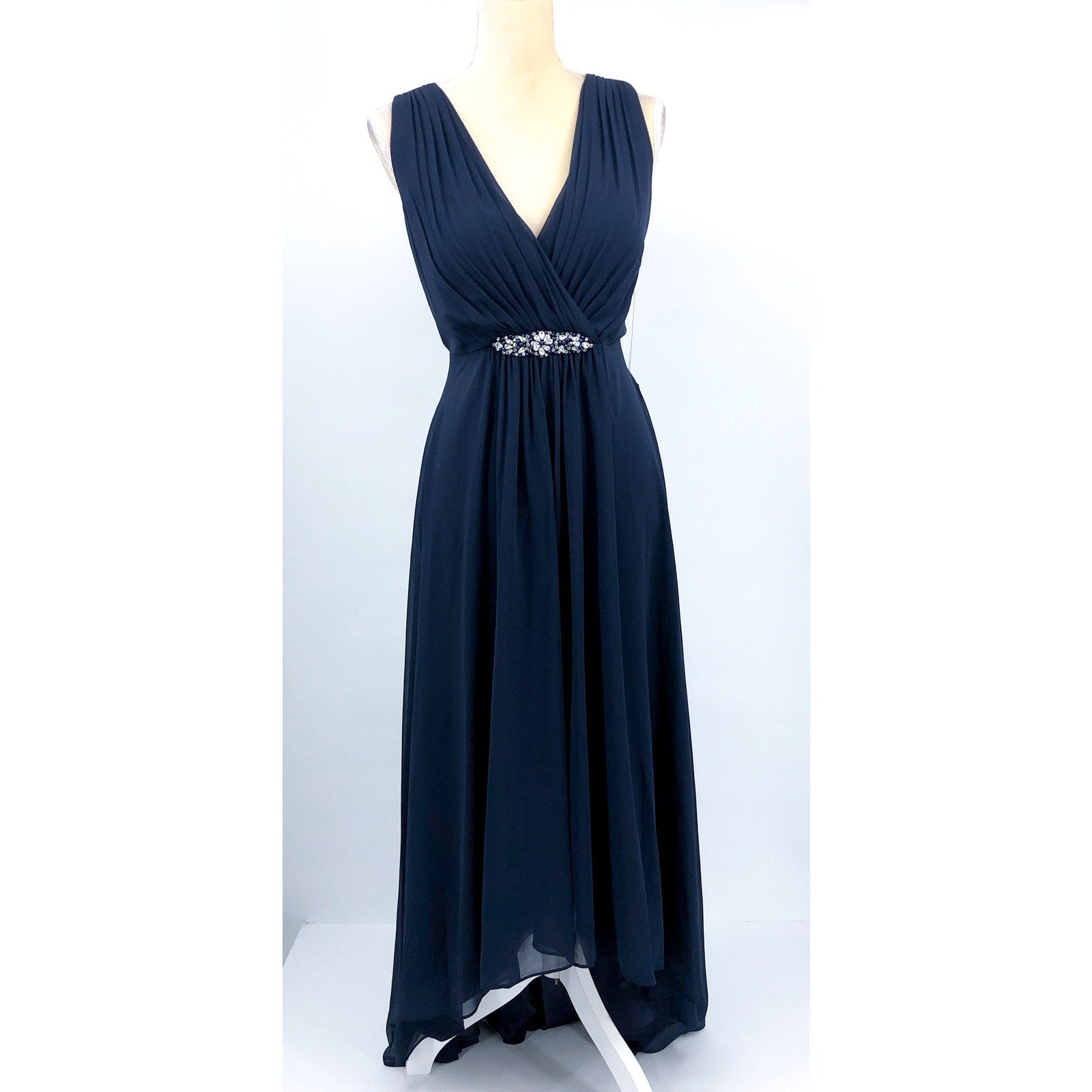 ELIZA J High Low Chiffon Long Dress Size 8 Navy Blue Embellished Sleeveless NWT