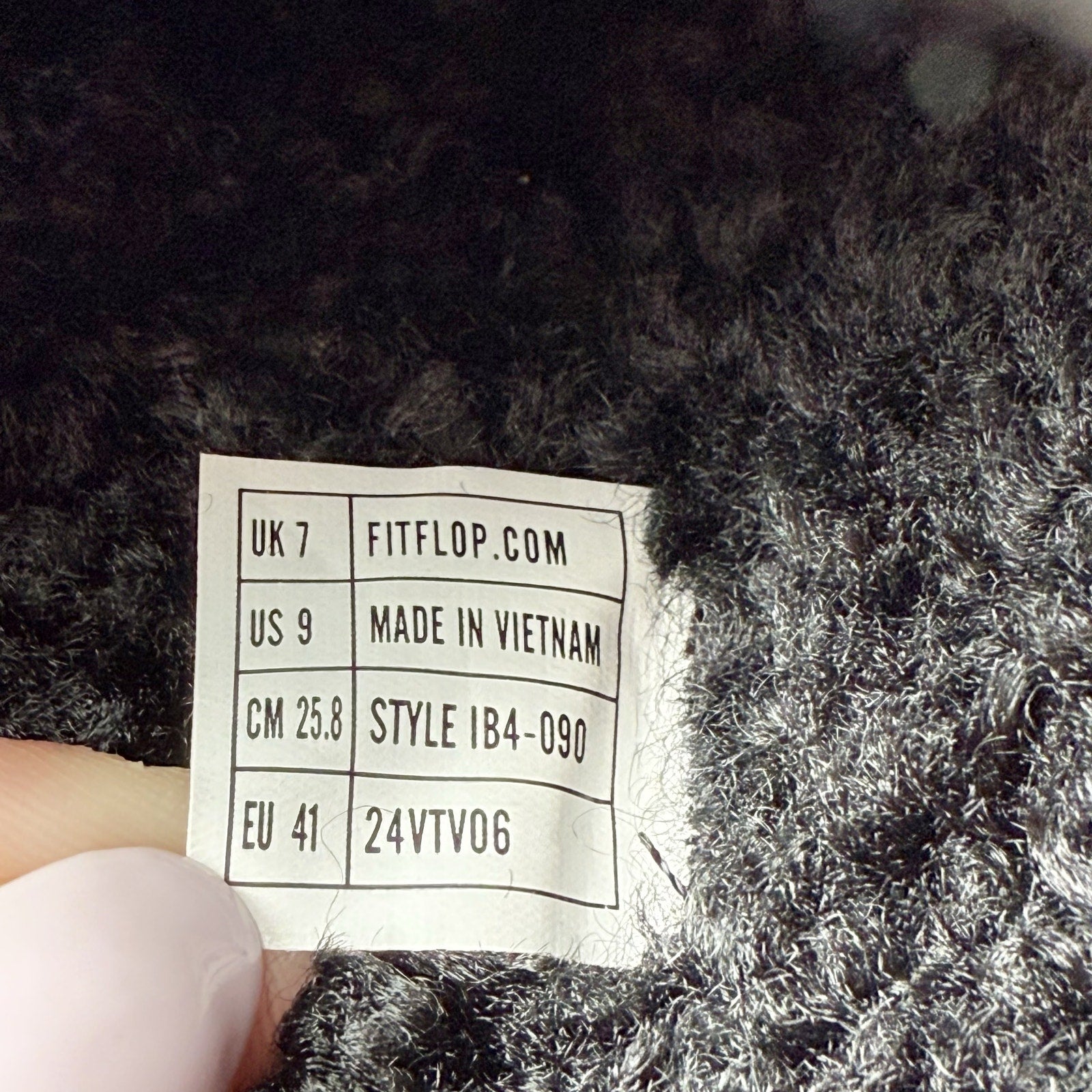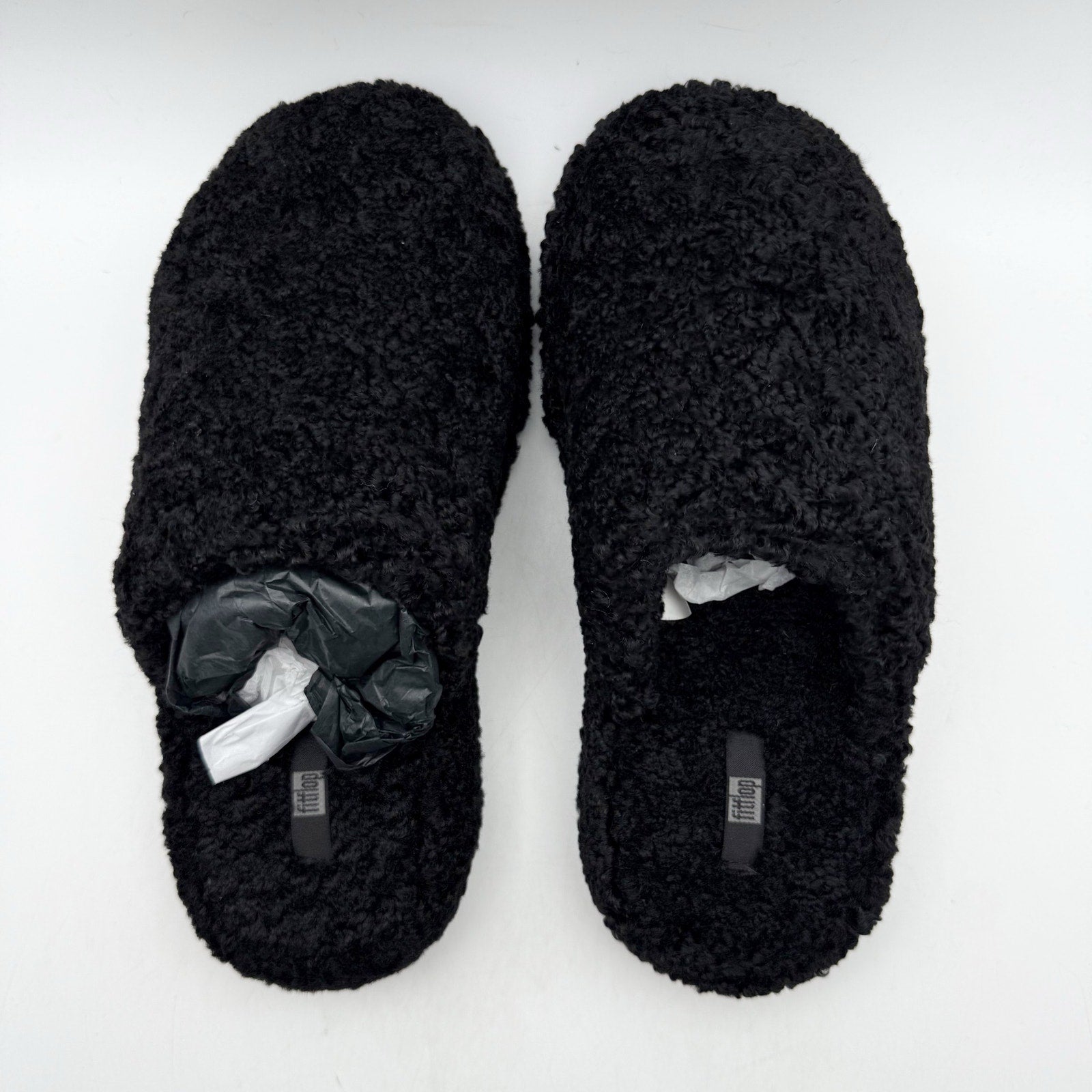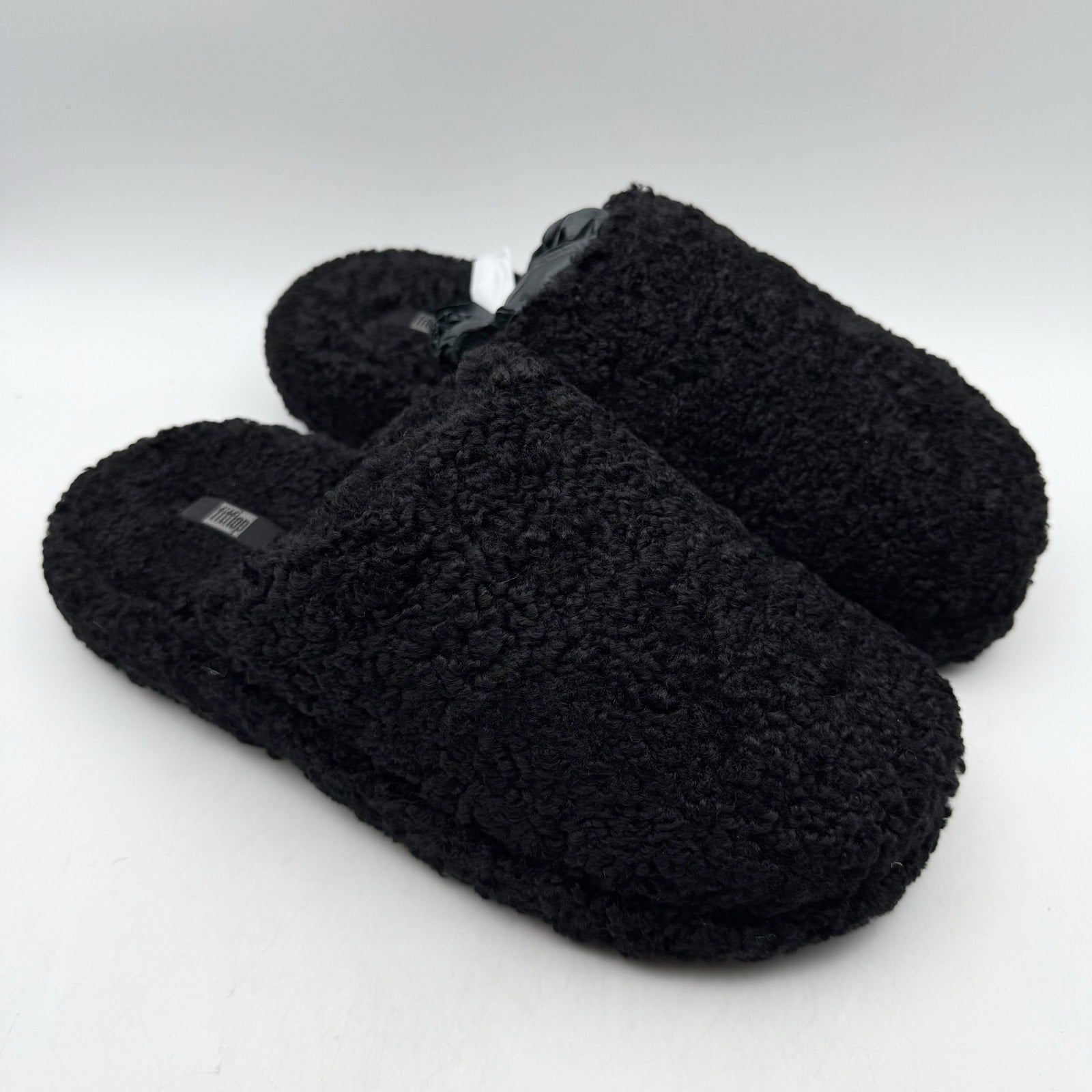 FitFlop Womens Iqushion D-Luxe Padded Teddy Mules US 9 Black Fleece NIB