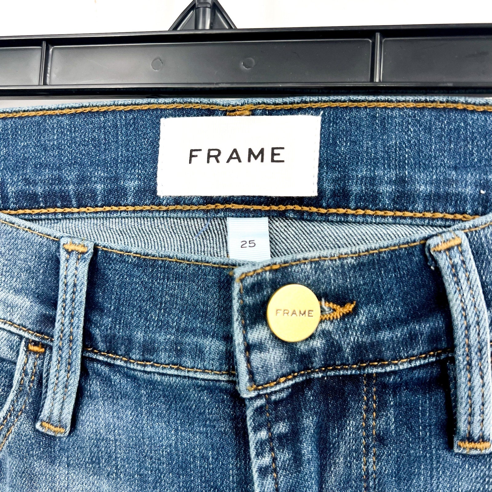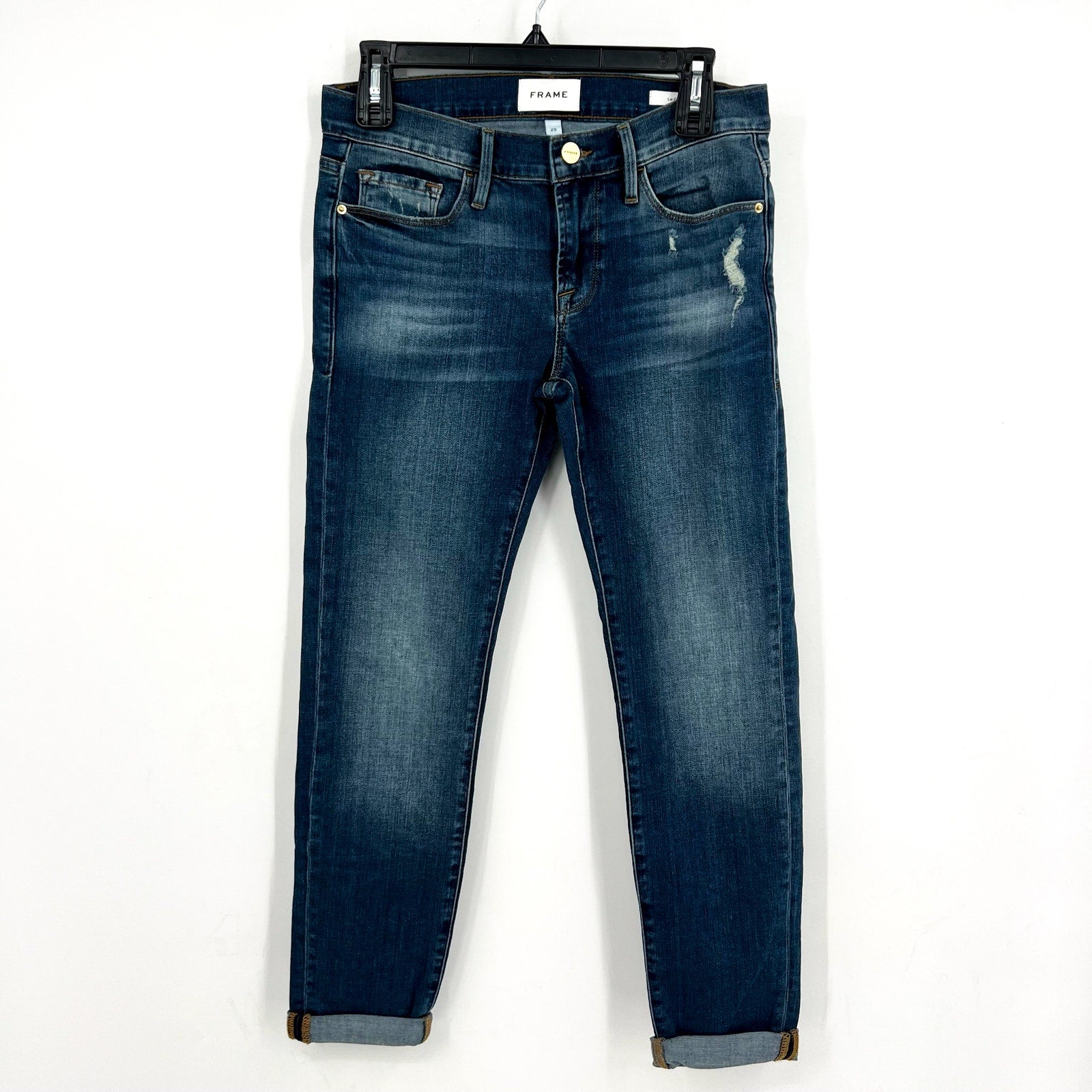 FRAME Women's Le Garcon Slim Boyfriend Jeans Size 25 Dark Blue Distressed NWOT