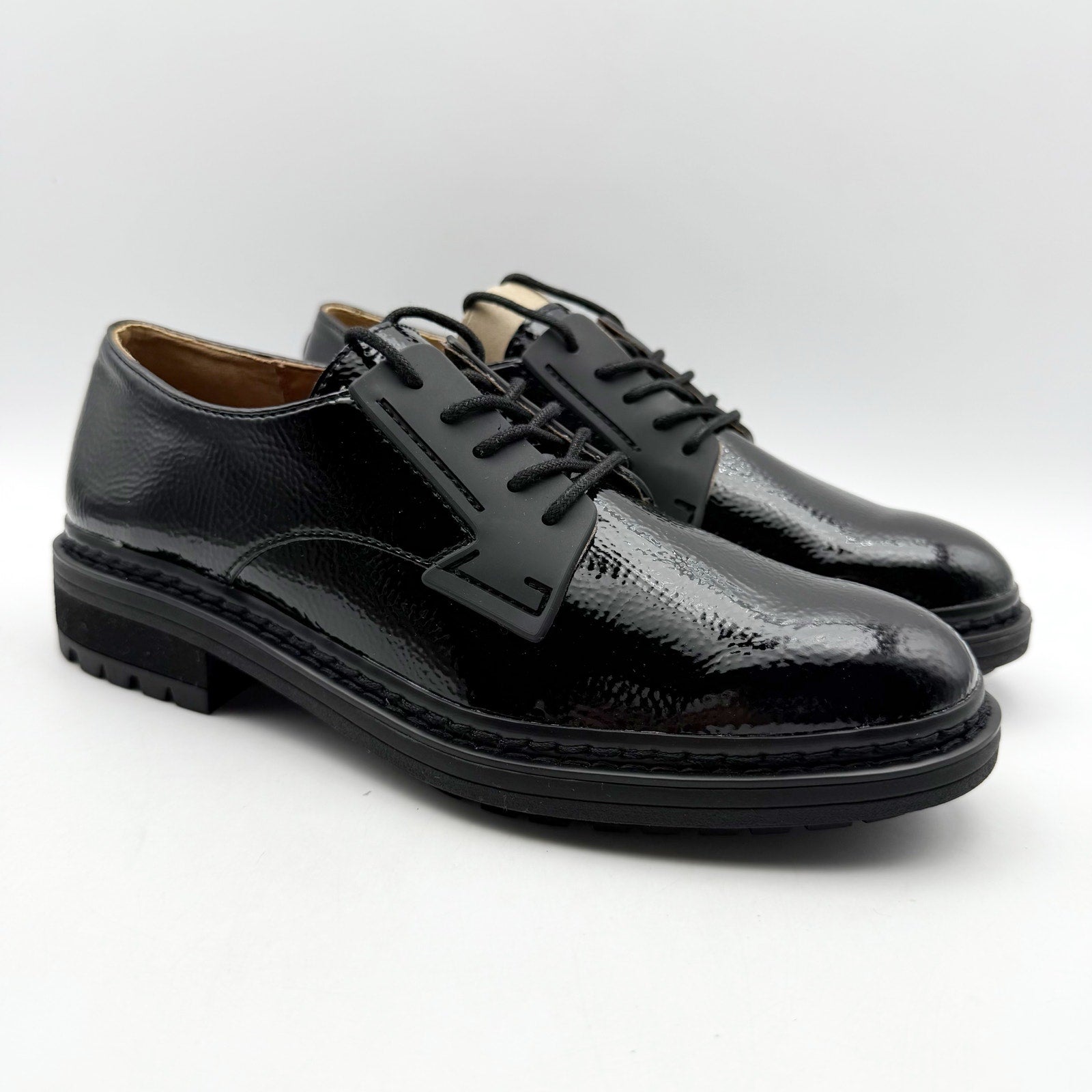 The Franco Sarto Sendra Lace-Up Oxford combines a classic design with a modern, high-sheen finish, adding an eye-catching touch to your everyday style.