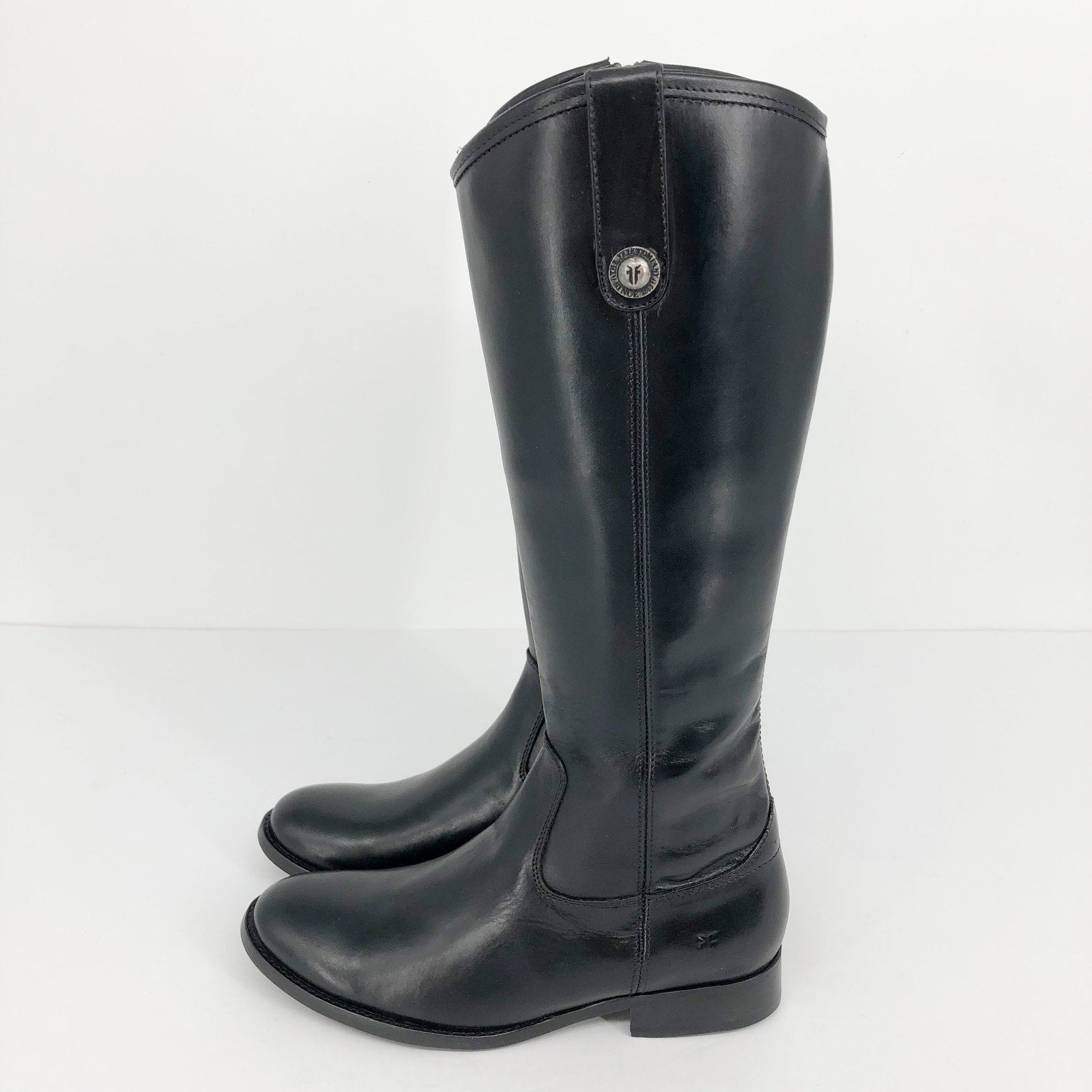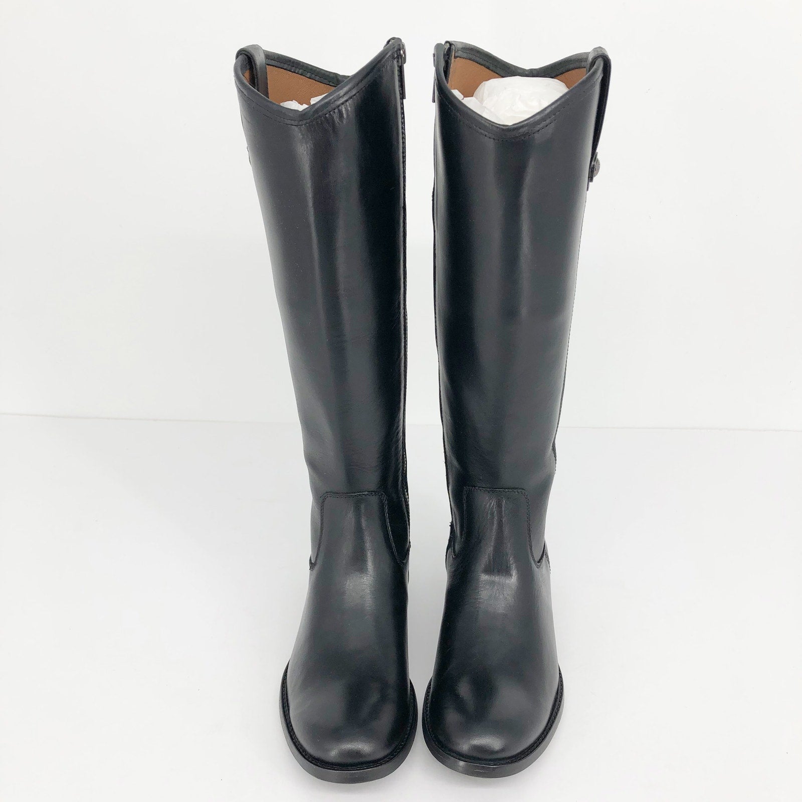 FRYE Women's Melissa Riding Boots Sz 6 Black Leather Button Inside Zip Tall NIB