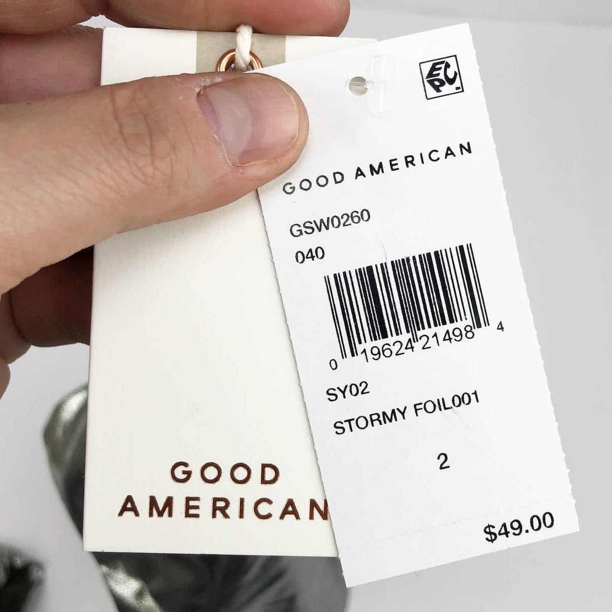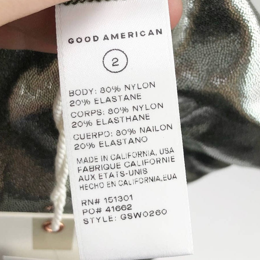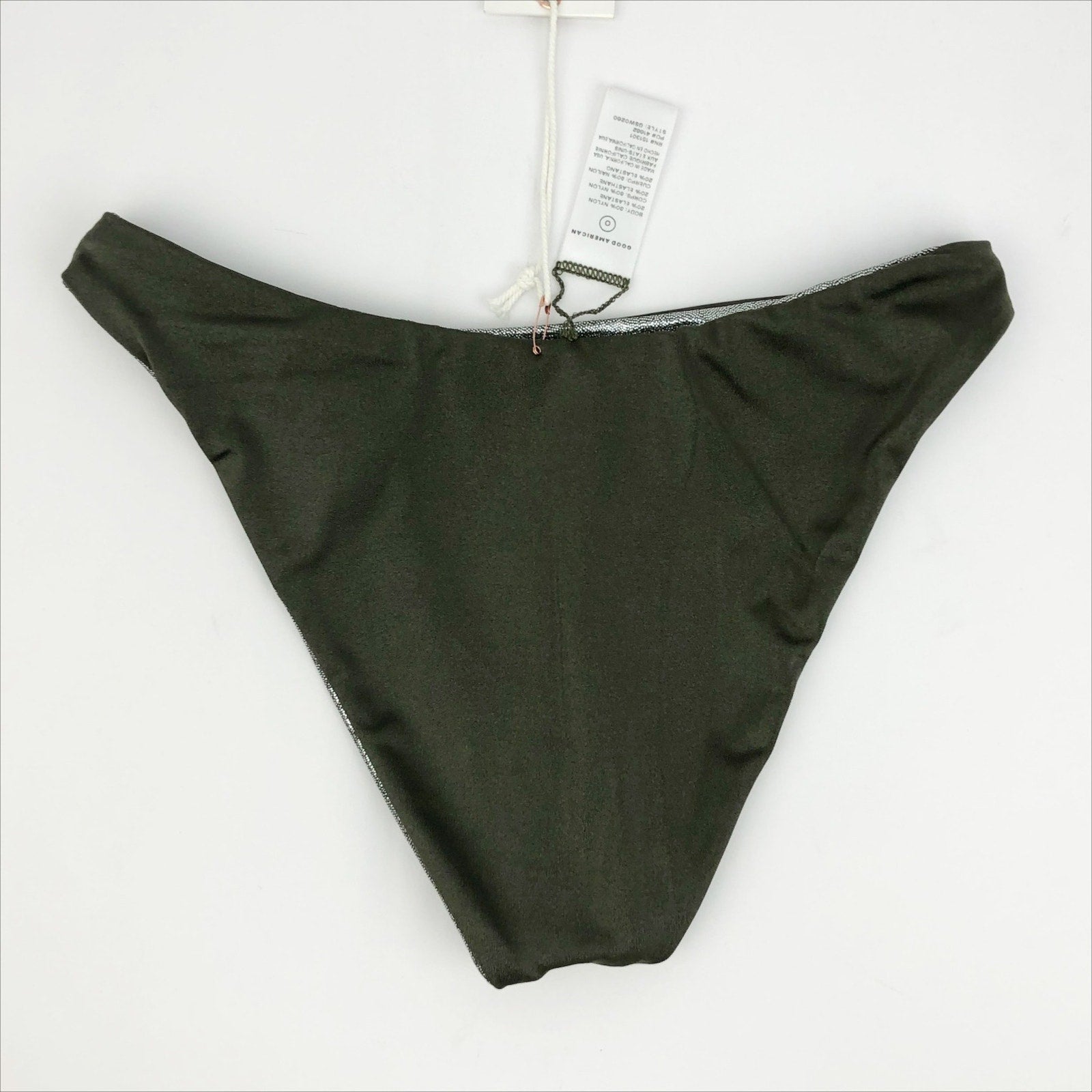 Good American Metallic Better Reversible Bikini Bottom Sz 2 Med Green Silver NWT
