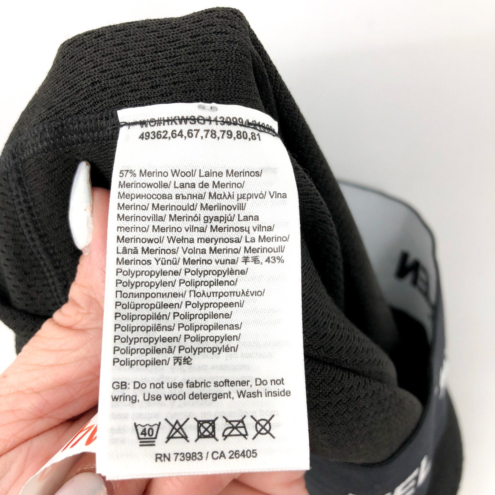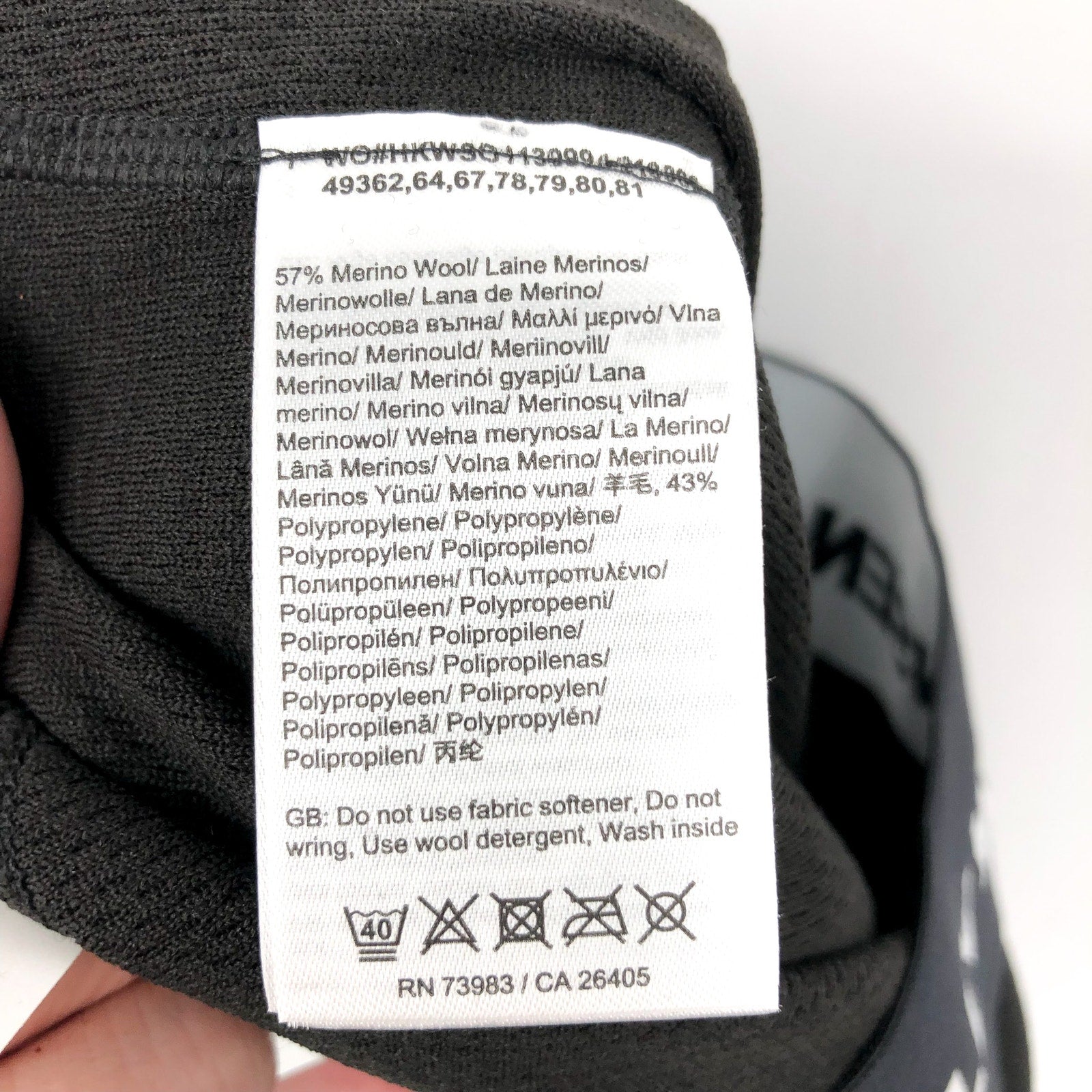 Shell: 57% Merino Wool, 43% Polypropylene