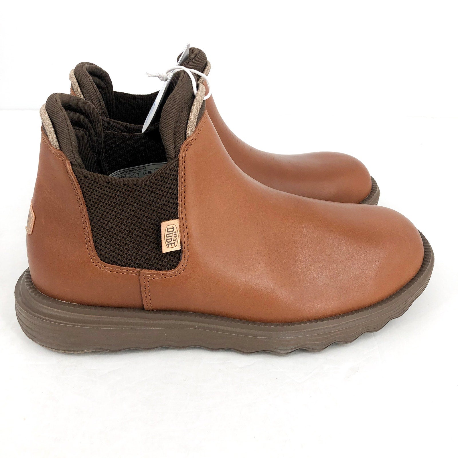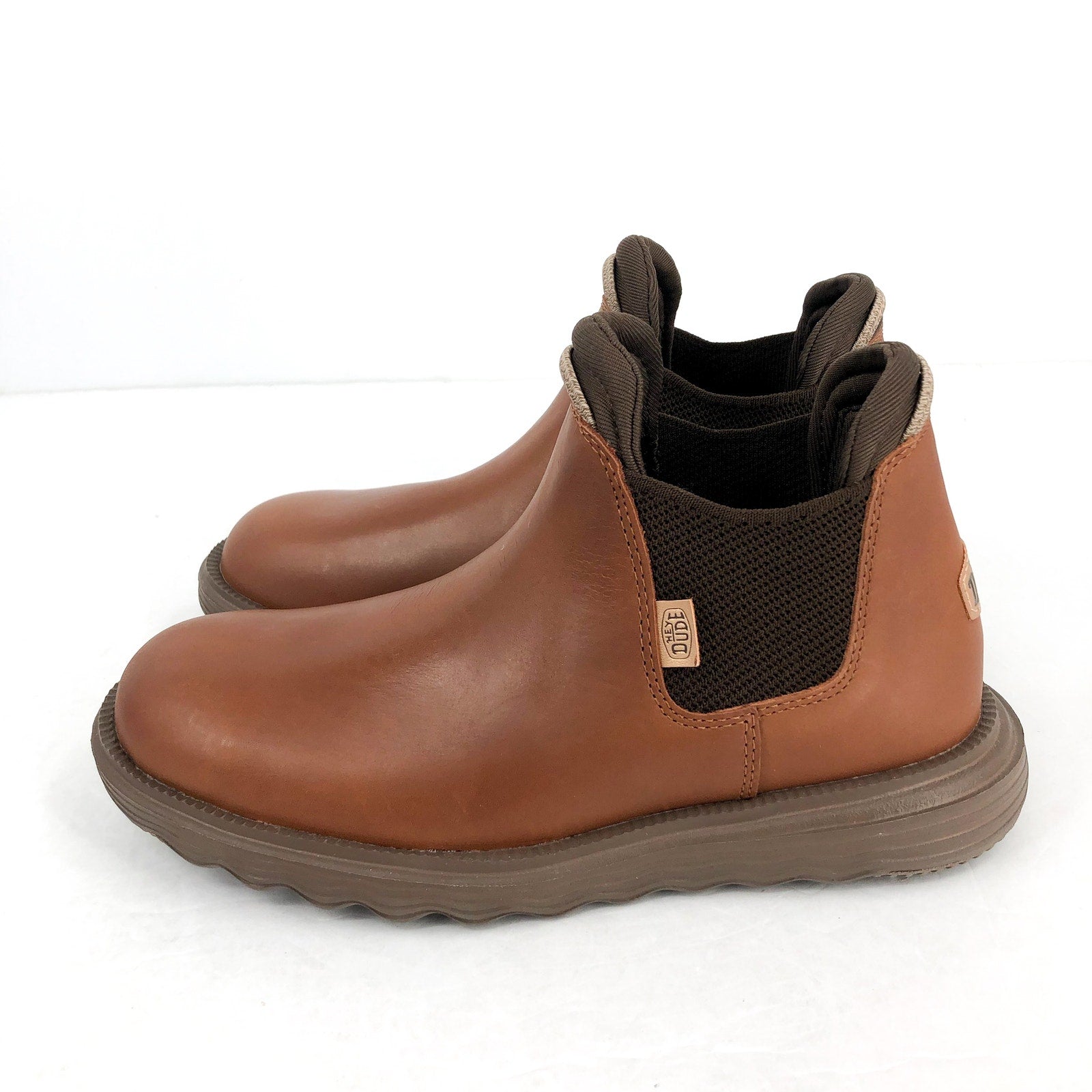 Hey Dude Womens Branson Ankle Bootie US 8 Cognac Leather Water Resistant NIB