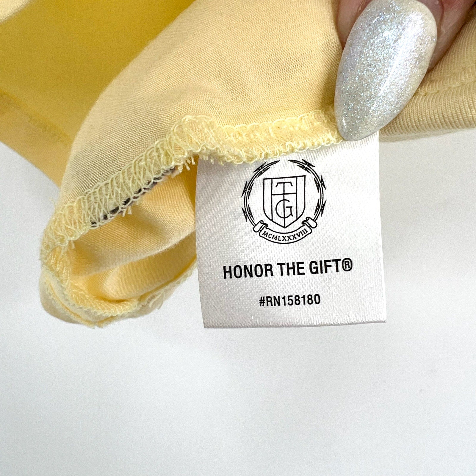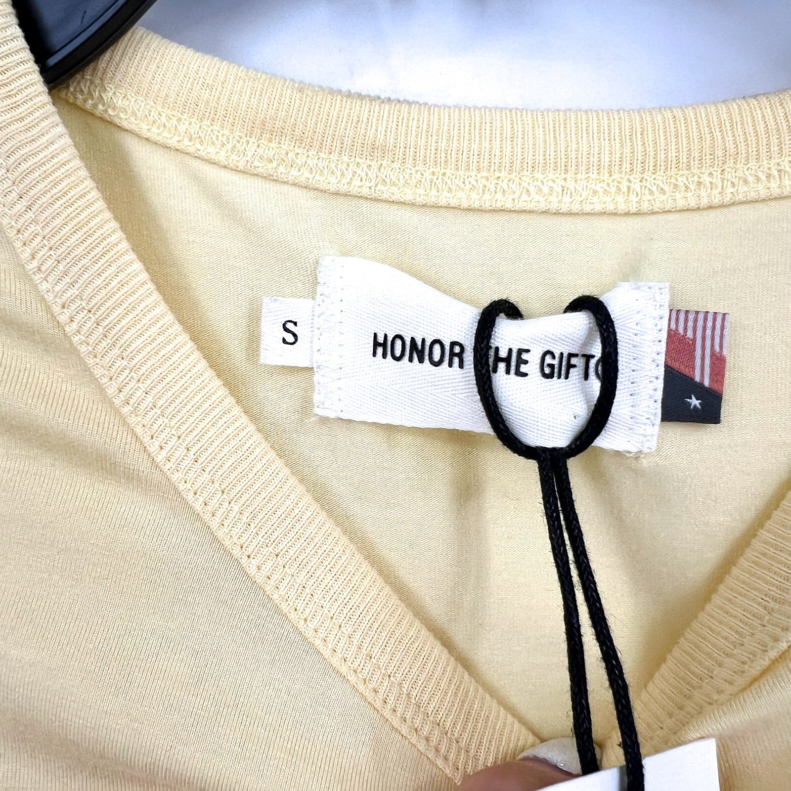 HONOR THE GIFT Women's Palms Cropped Graphic T-Shirt Small Yellow Blonde NWT
