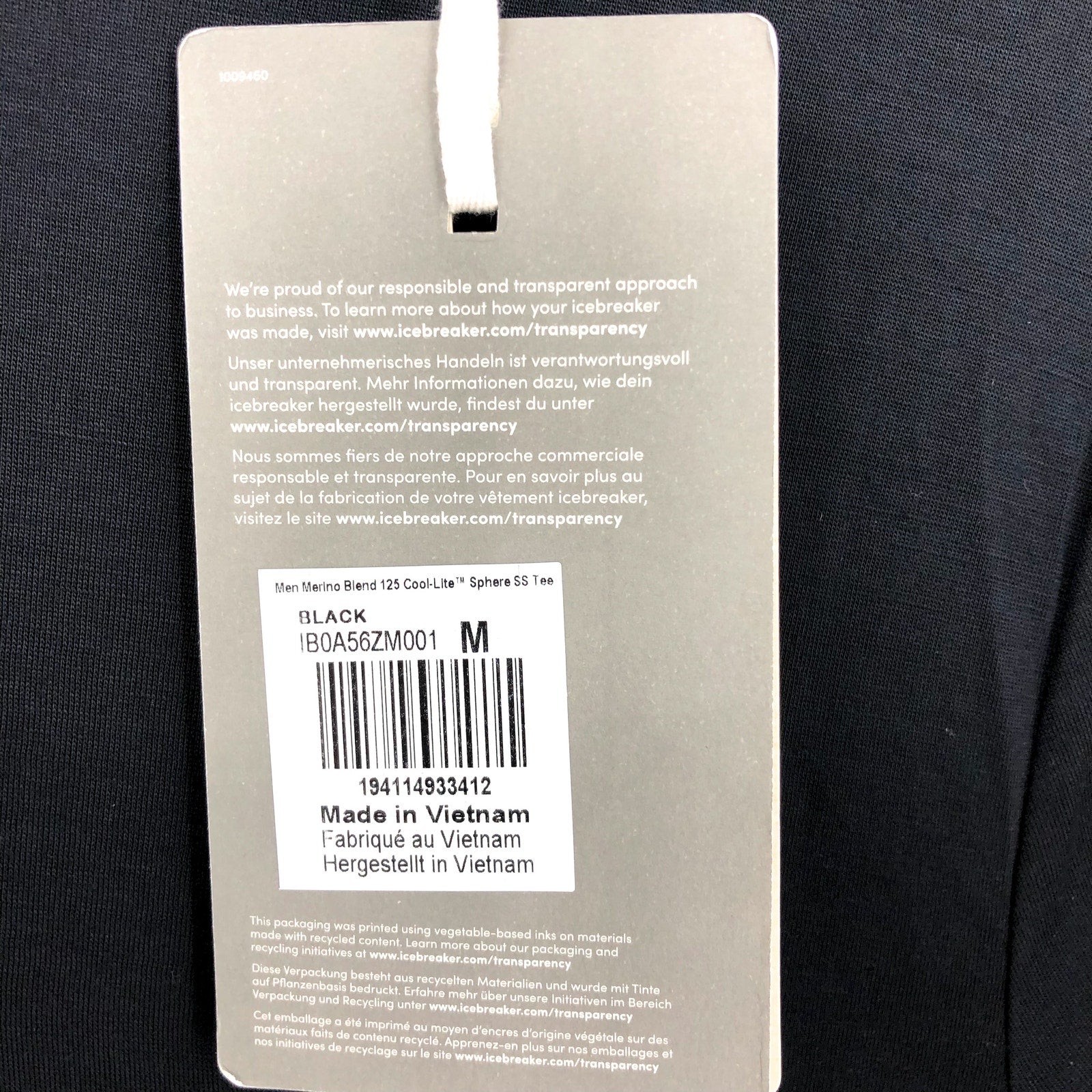 ICEBREAKER Mens 125 Cool-Lite Sphere Crewneck T-Shirt Medium Black Merino NWT