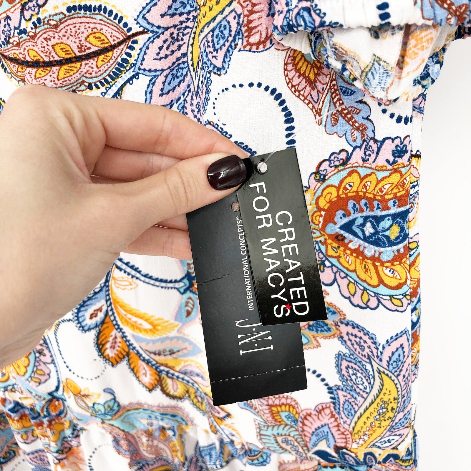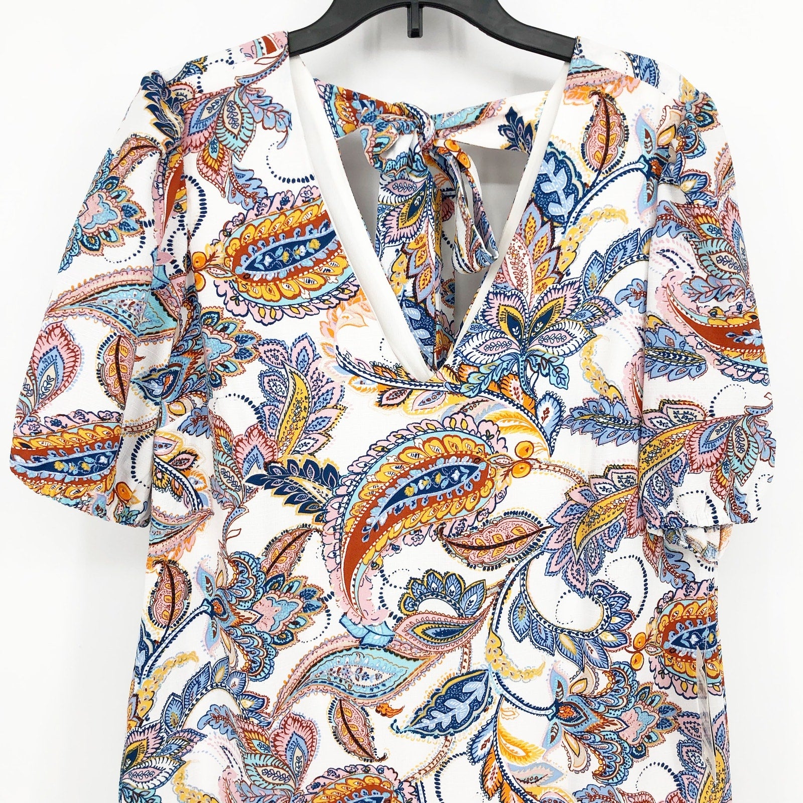 INC International Concepts Womens Paisley Dress XS White Multicolor Vneck NWT