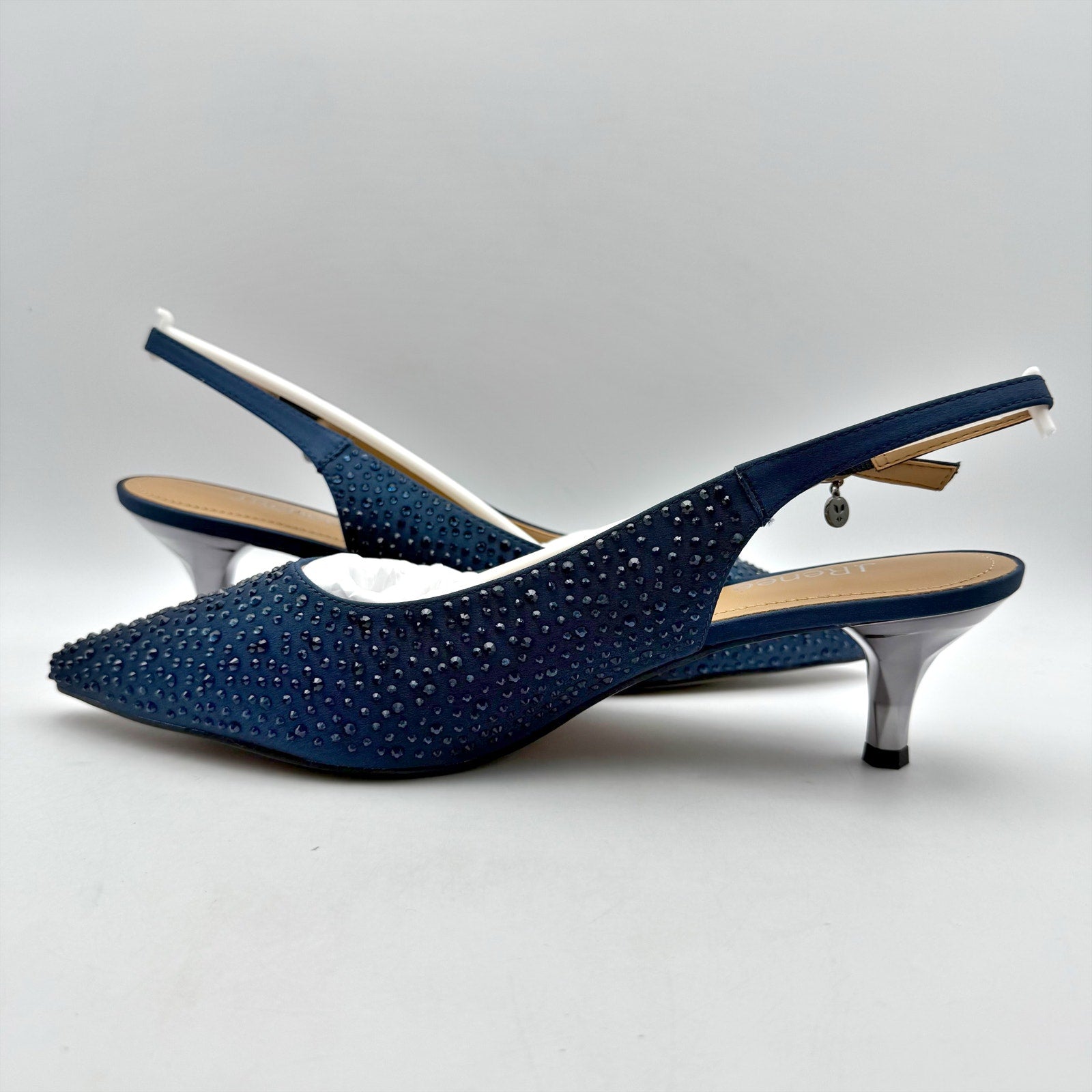 J. Renee Womens Ferryanne Kitten Heel US 12 Wide Navy Rhinestone NIB