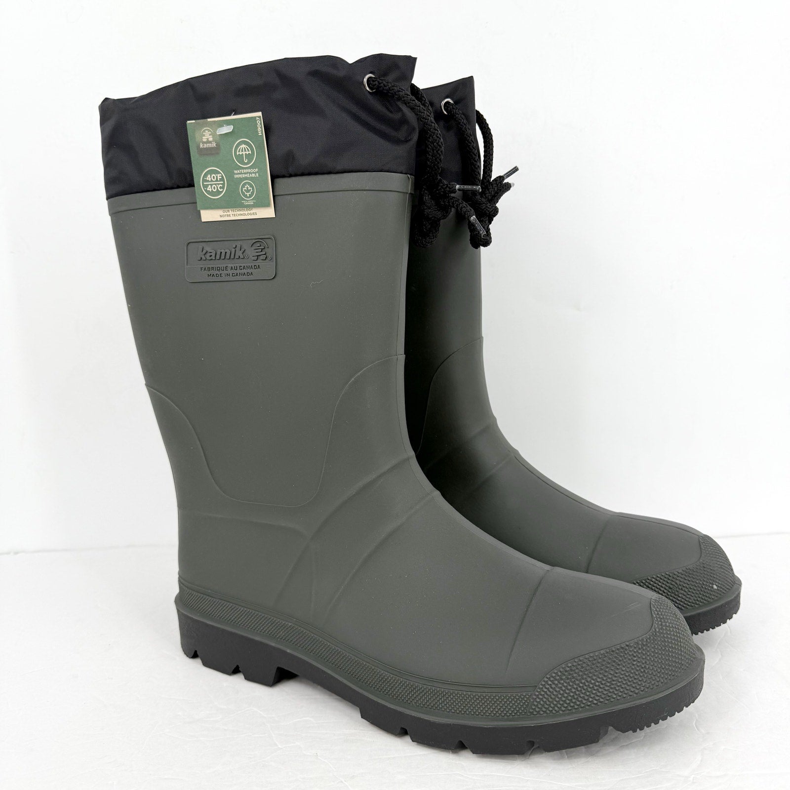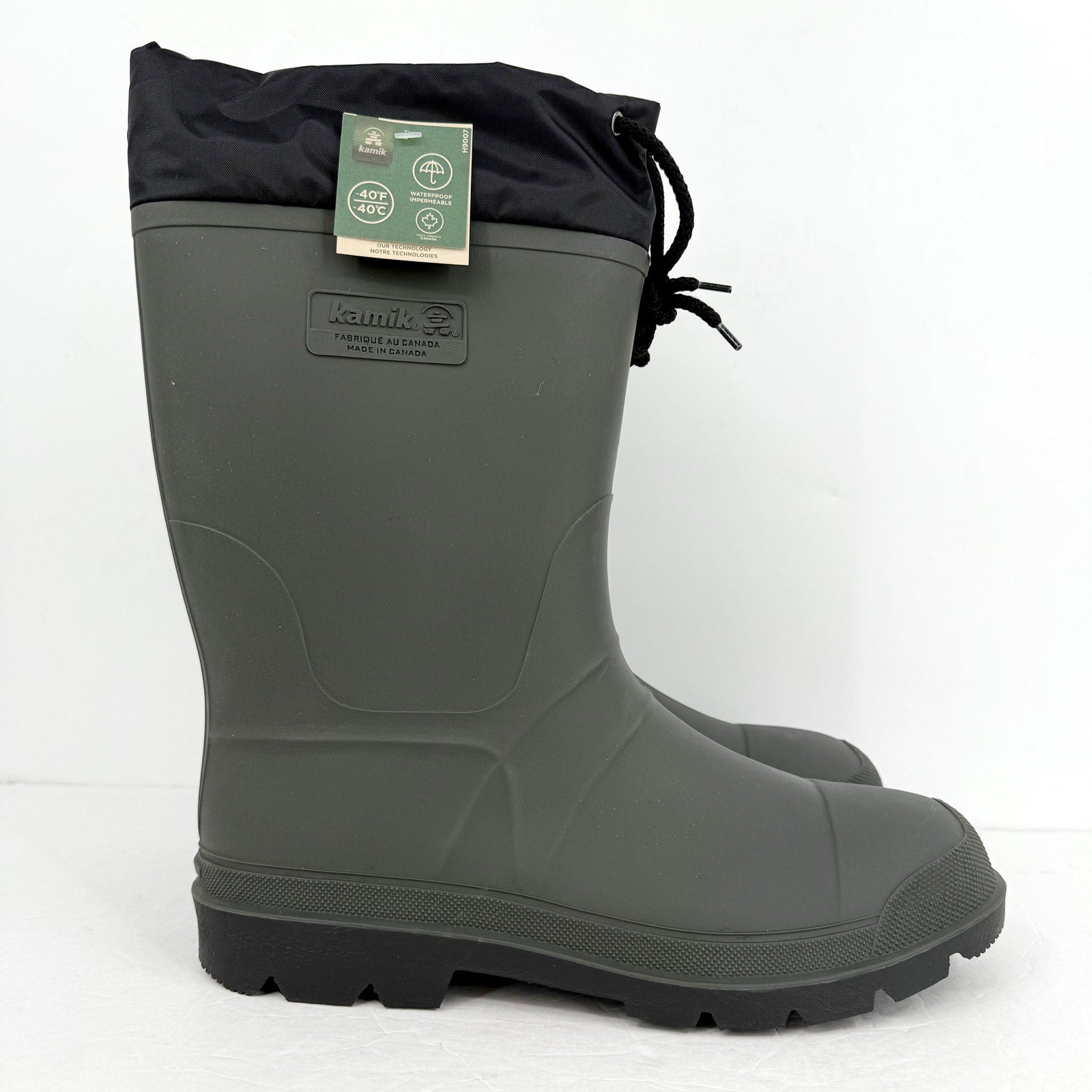 Kamik Mens Forester Winter Rainboots US 13 D Black Khaki Waterproof NWOB