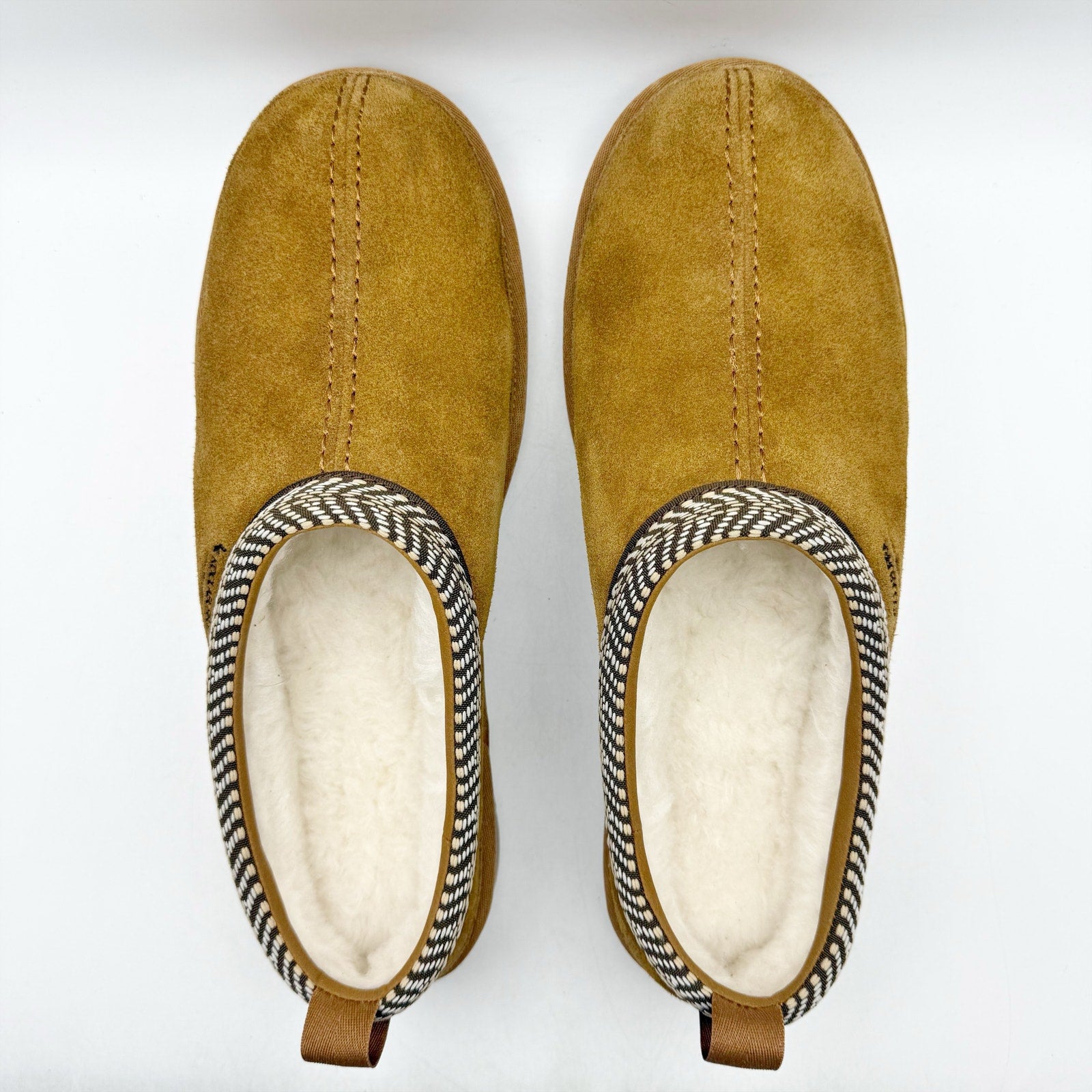 They are crafted from suede upper, textile lining, and faux fur sockliner. A round toe, slip-on style, and heel pull-tabs make the shoes easy to put on and off. They have flat heel, low-top design, and EVA midsole.