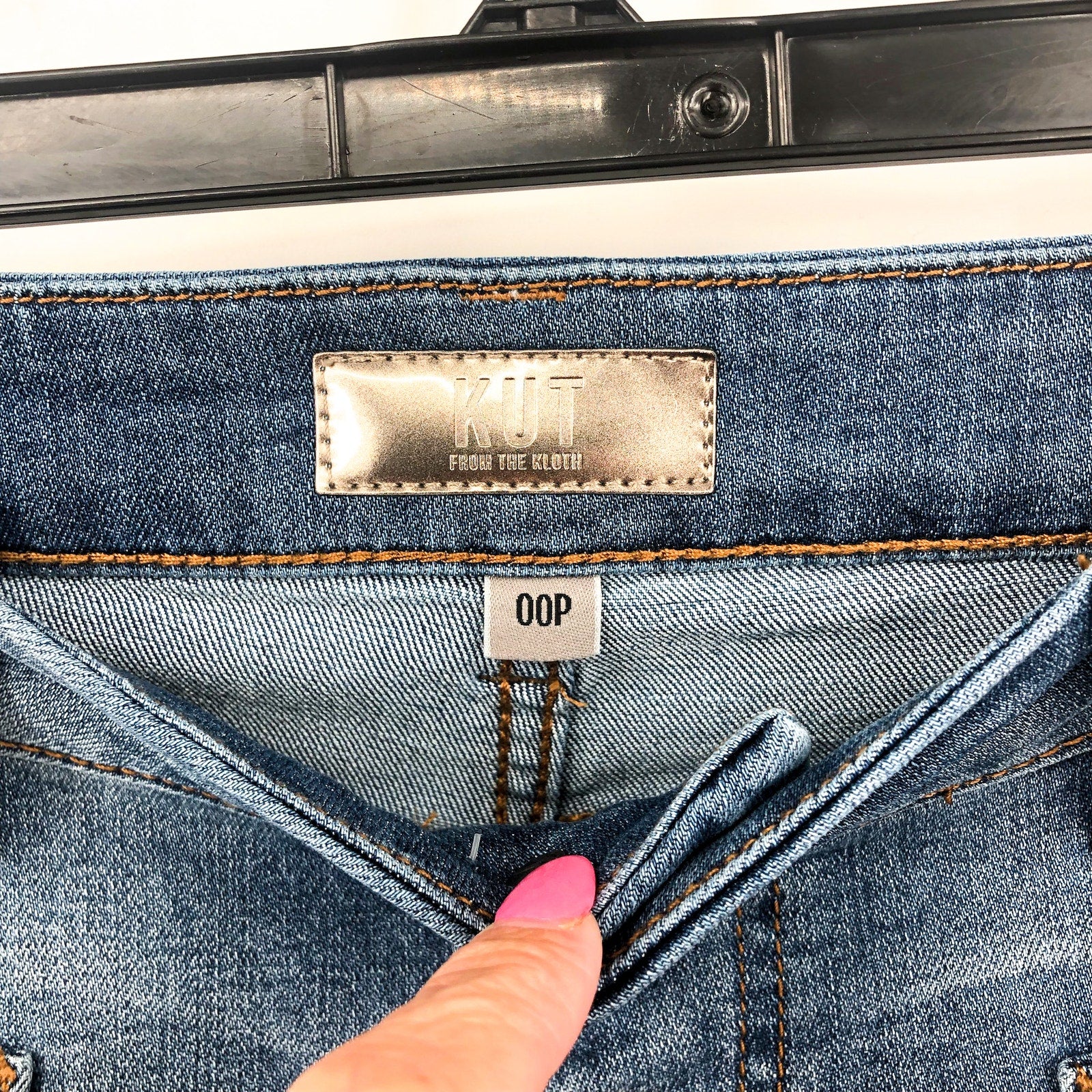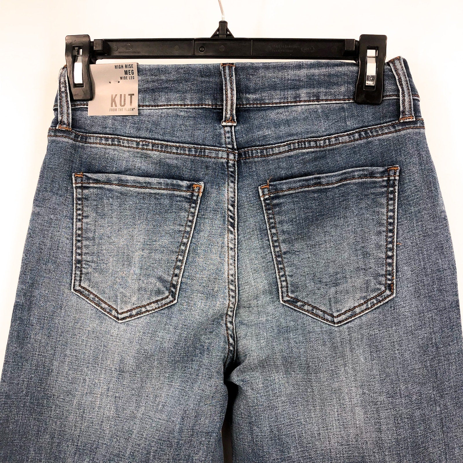 KUT FROM THE KLOTH Meg Wide Leg Jeans 00 Petite Blue Exposed Button NWT