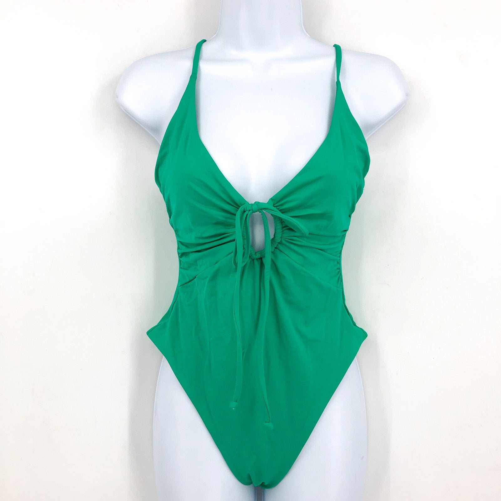 L SPACE Women's Piper Classic One Piece Swimsuit Medium Jade Green Keyhole
