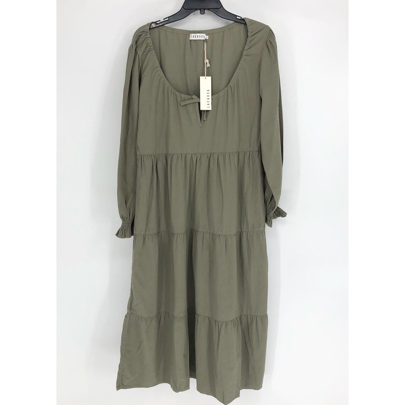 LACAUSA Women's Tate Tiered Midi Dress Small Eucalyptus Green Long Sleeve NWT