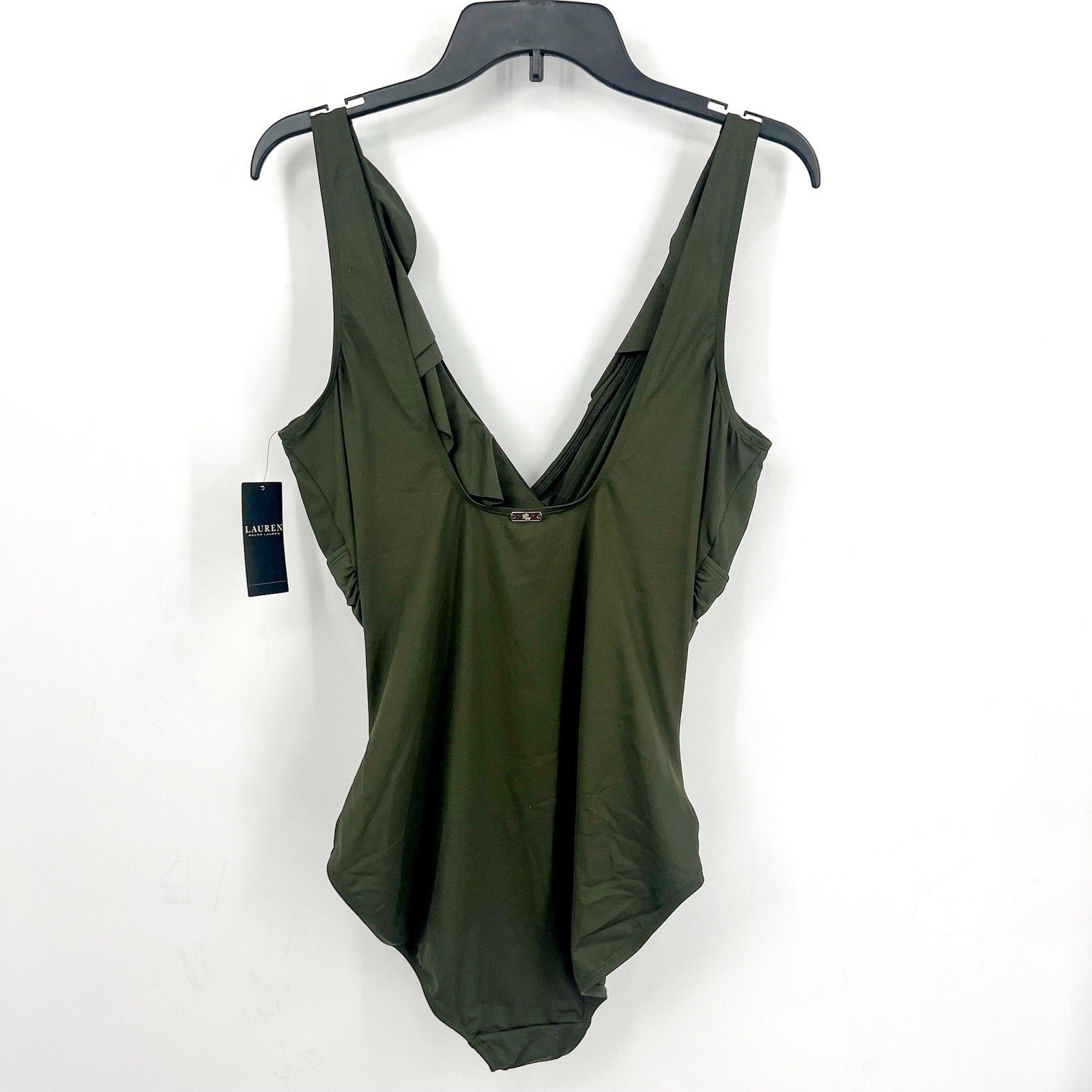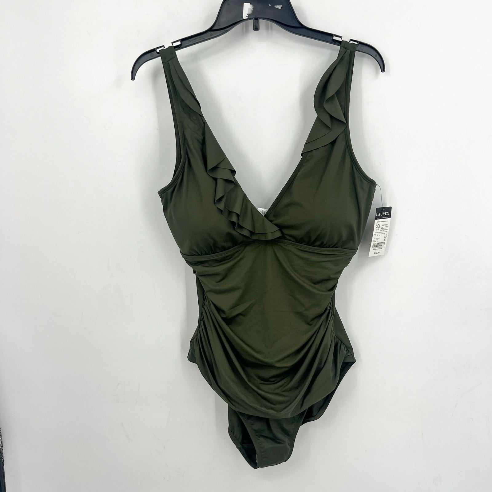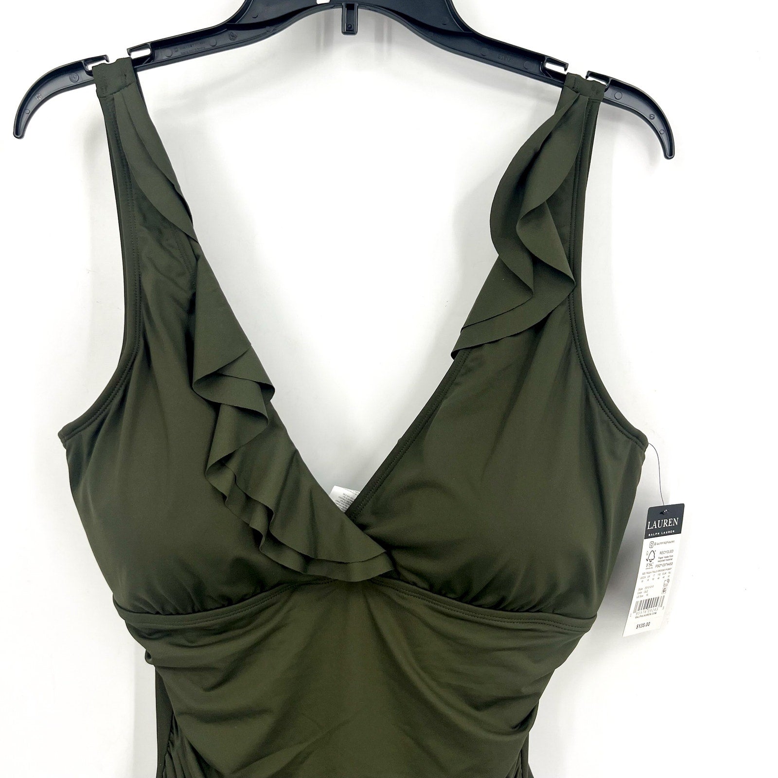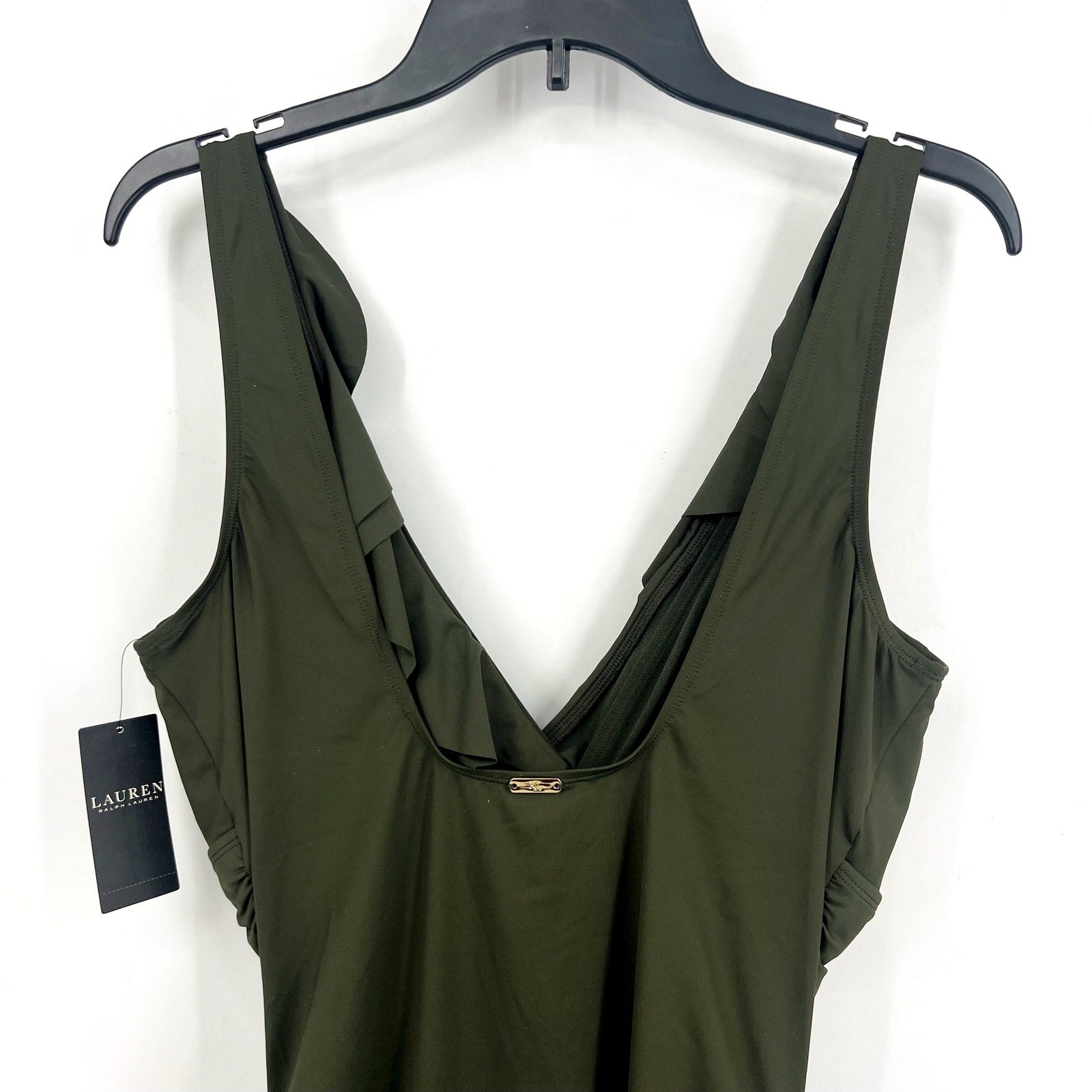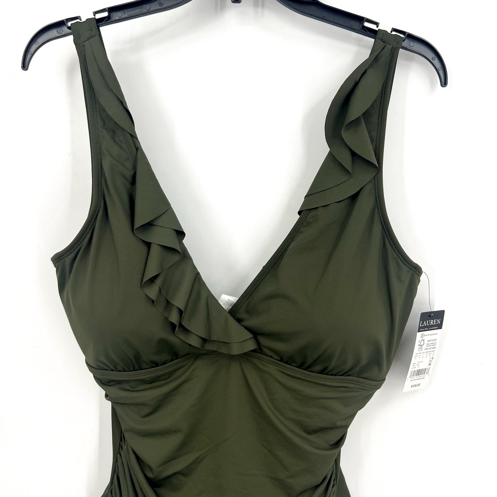 LAUREN RALPH LAUREN Beach Club Ruffle One Piece Swimsuit Size 16 Olive Green NWT