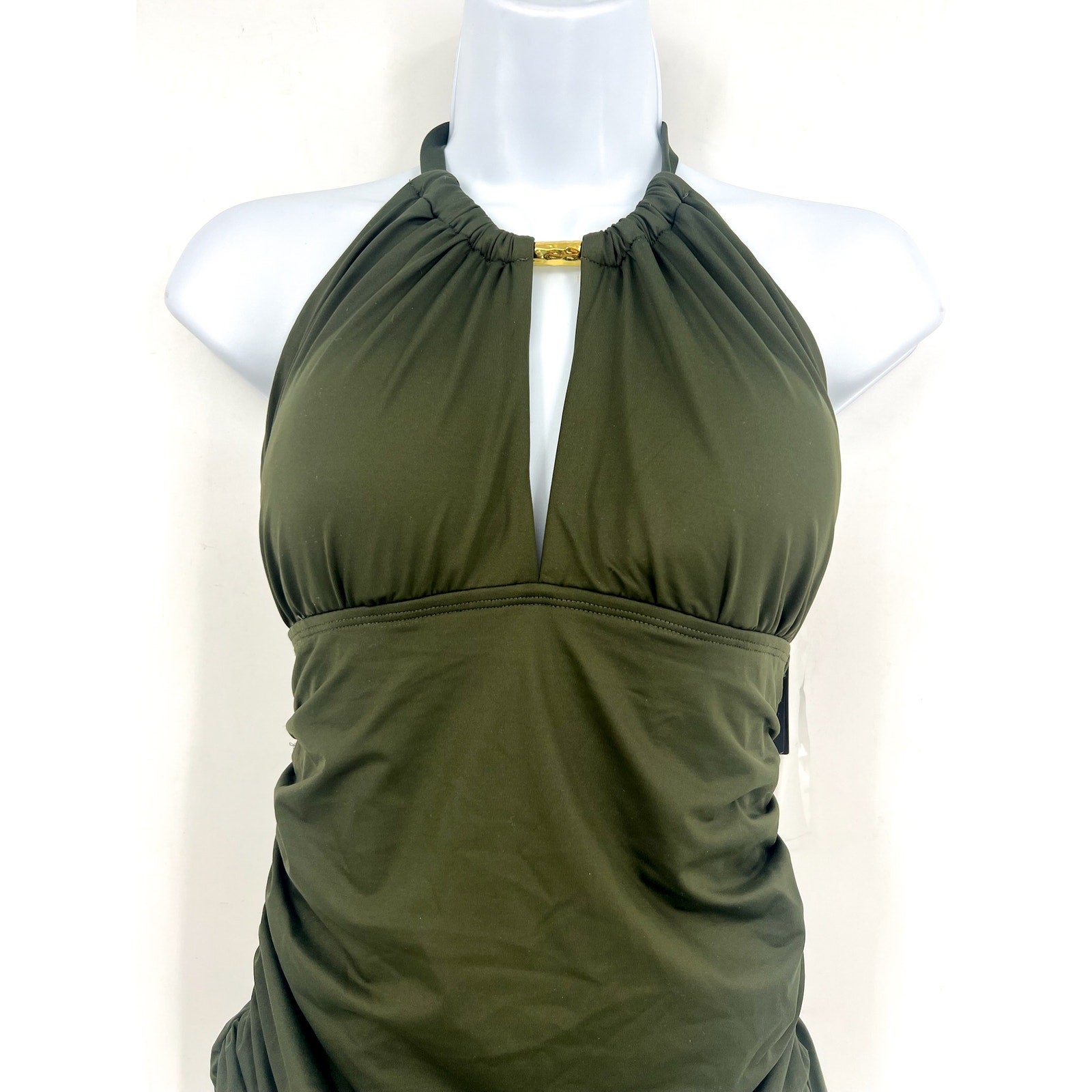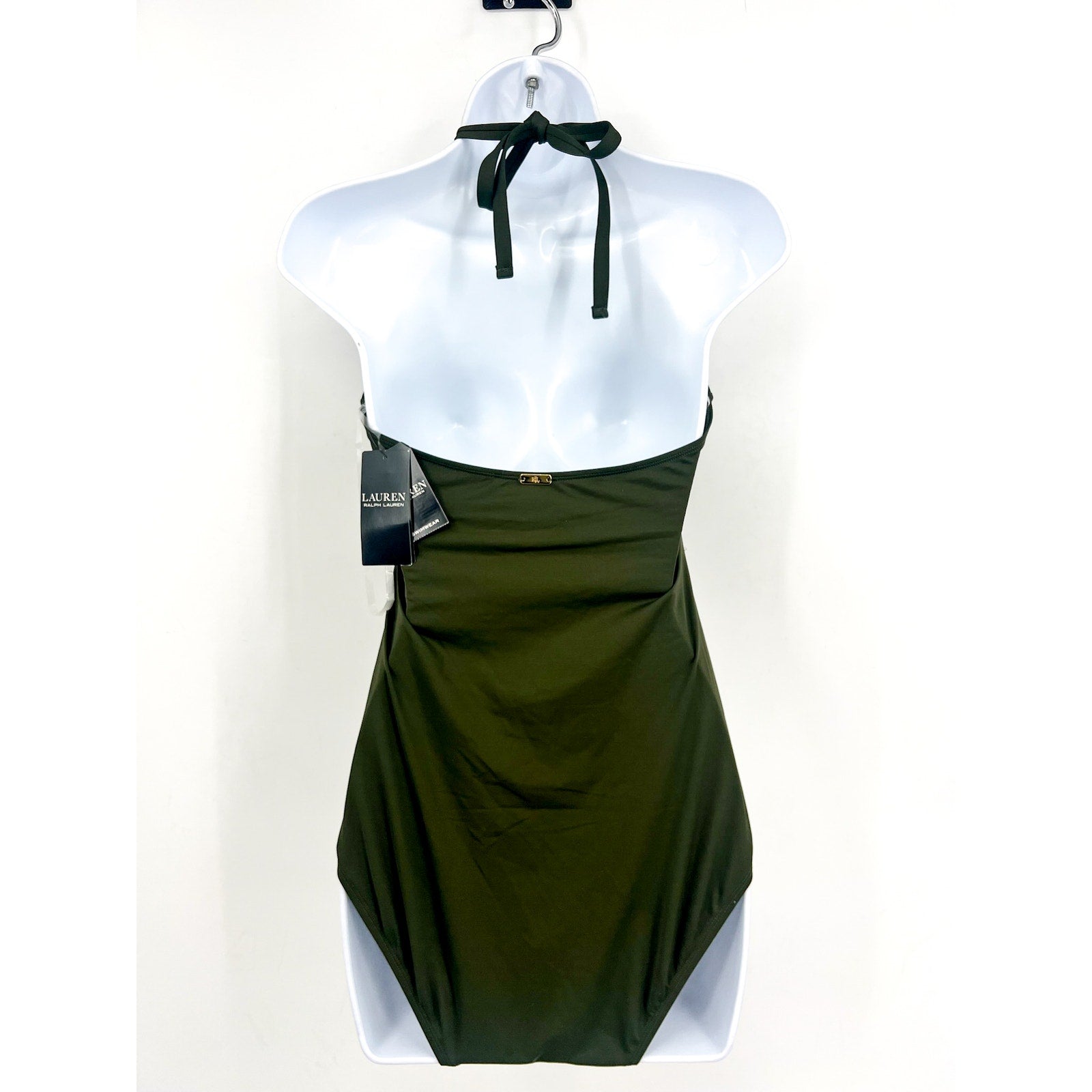 LAUREN RALPH LAUREN High Neck One-Piece Swimsuit 12 Olive Green Beach Club NWT