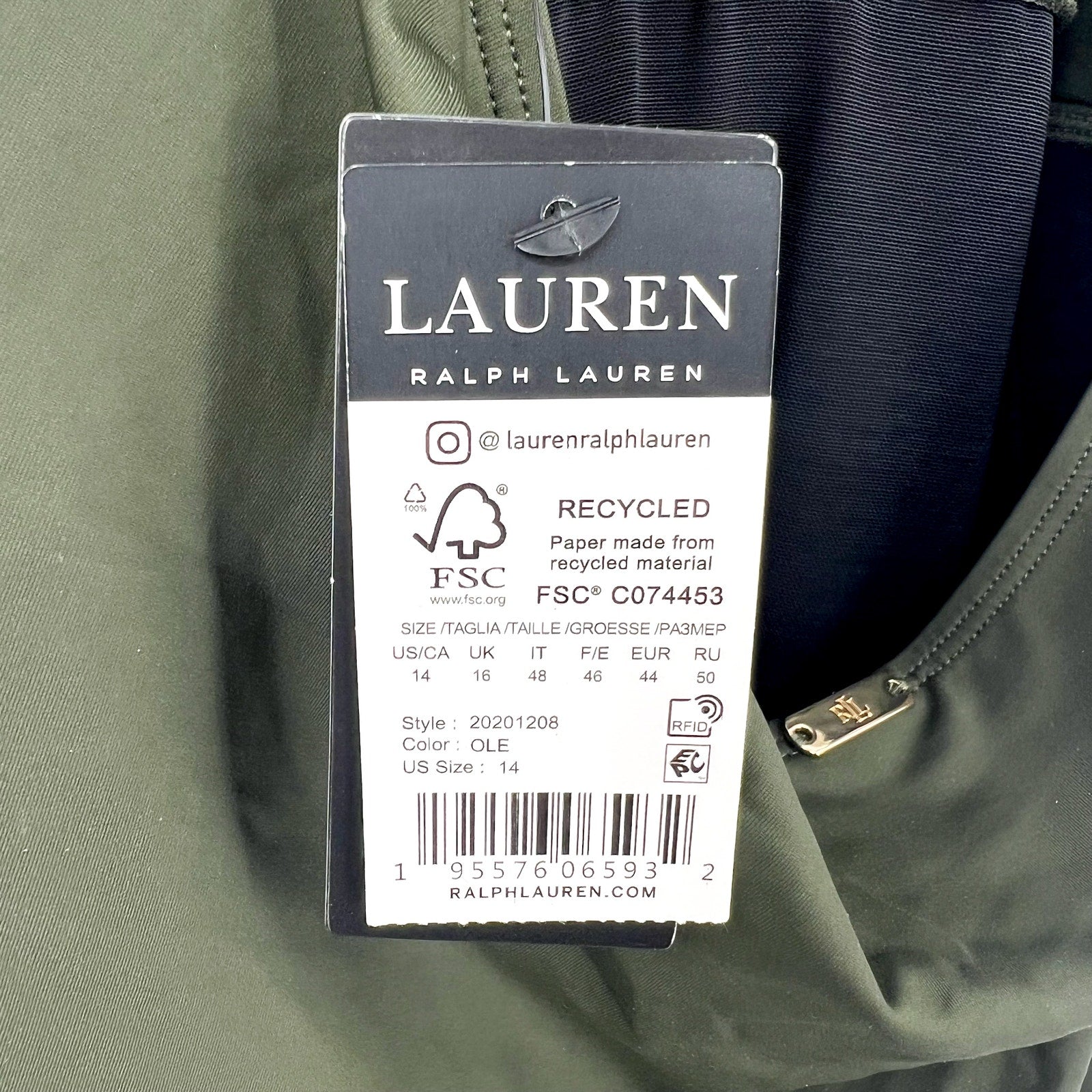 LAUREN RALPH LAUREN High Neck One-Piece Swimsuit 14 Olive Green Beach Club NWT