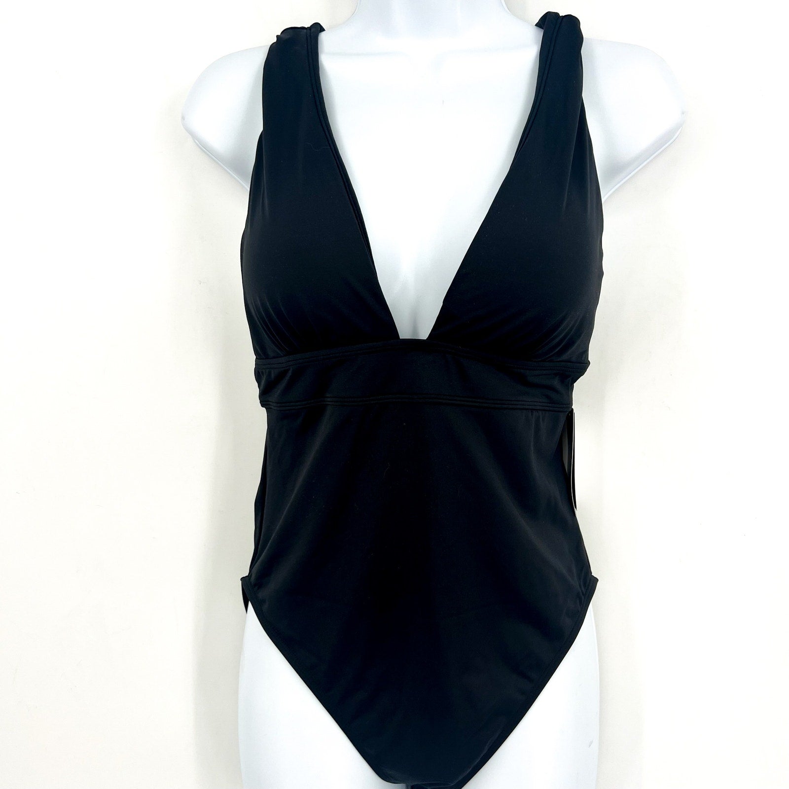 LAUREN RALPH LAUREN Sculpting Modern V Neck One Piece Swimsuit Size 6 Black NWT