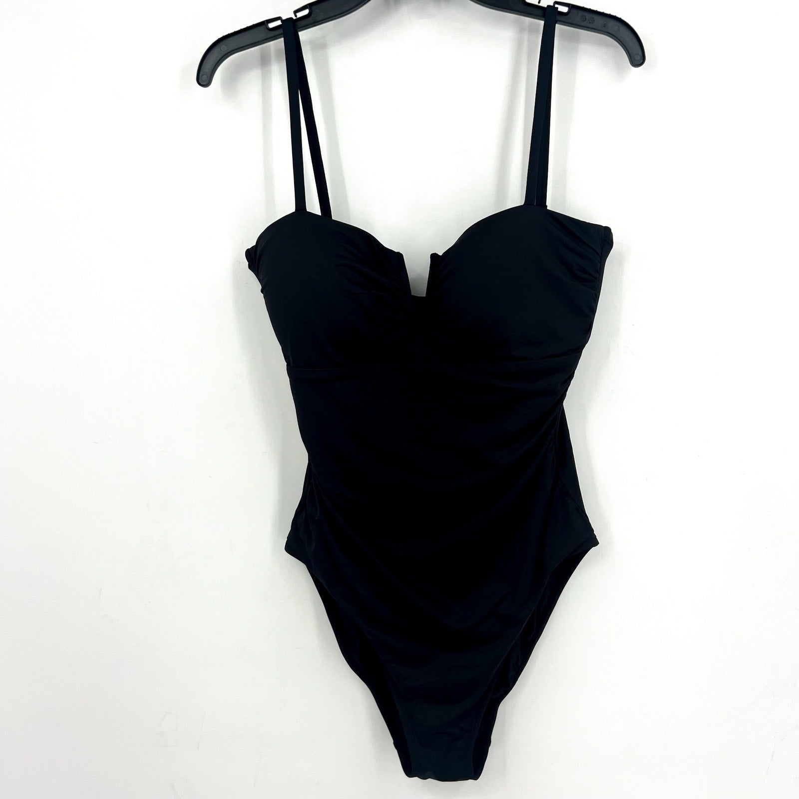 LAUREN RALPH LAUREN Solids V Wire One Piece Swimsuit Size 8 Black NWT